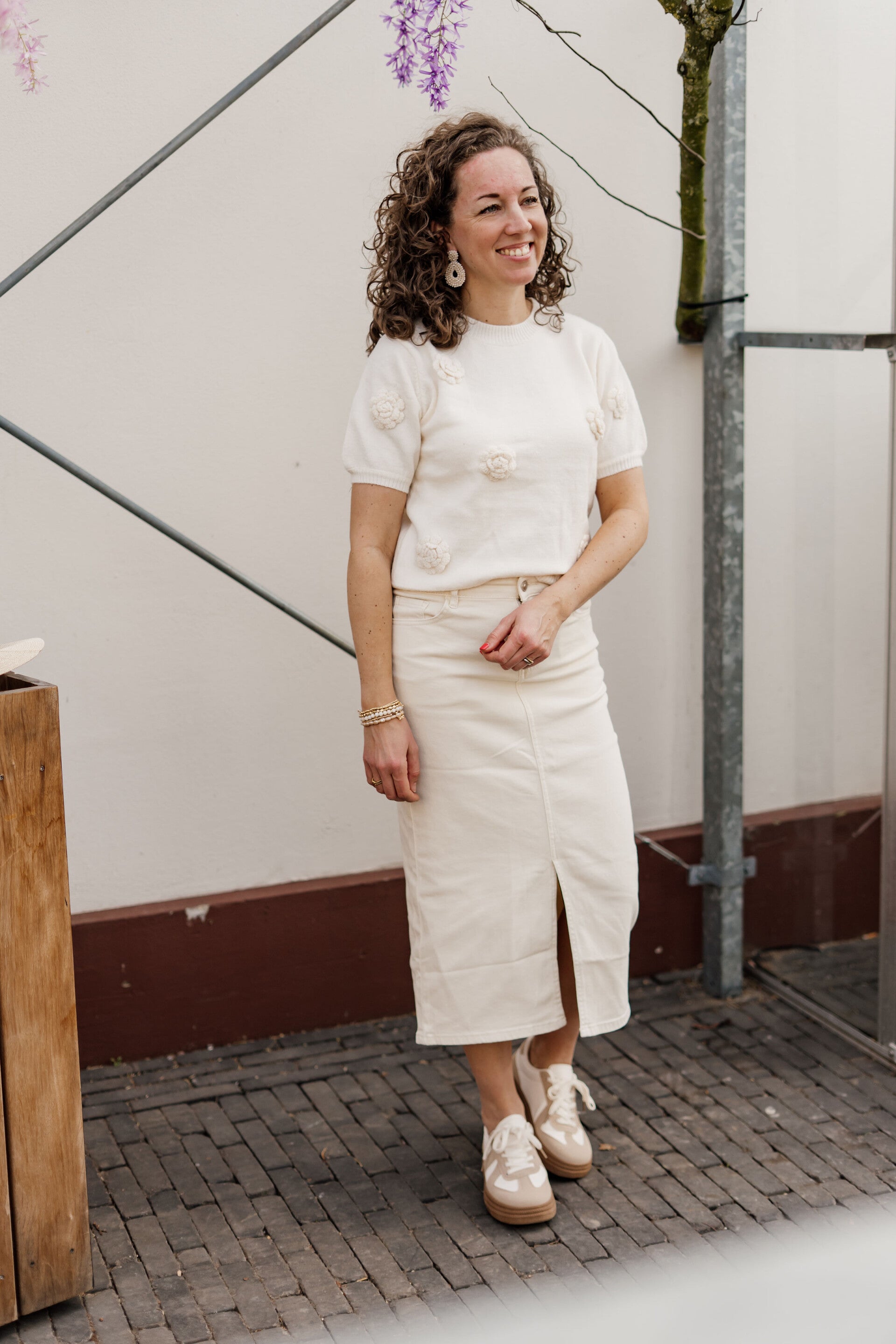 Deze midi spijkerrok in beige kleur is onmisbaar dit seizoen, valt goed op maat en we adviseren om je eigen maat te bestellen. Twijfel je over twee maten? Kies dan de grootste maat.