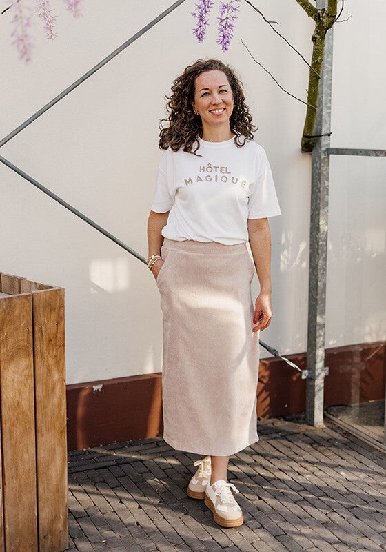 Verkrijgbaar in maat S t/m XL. Mariëlle draagt maat S.