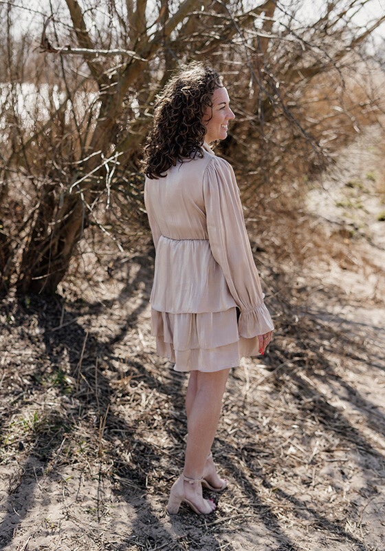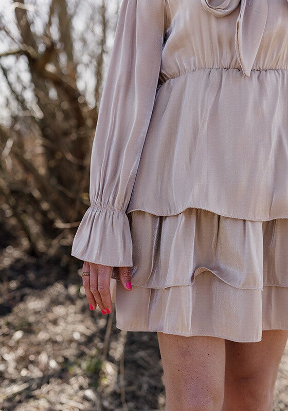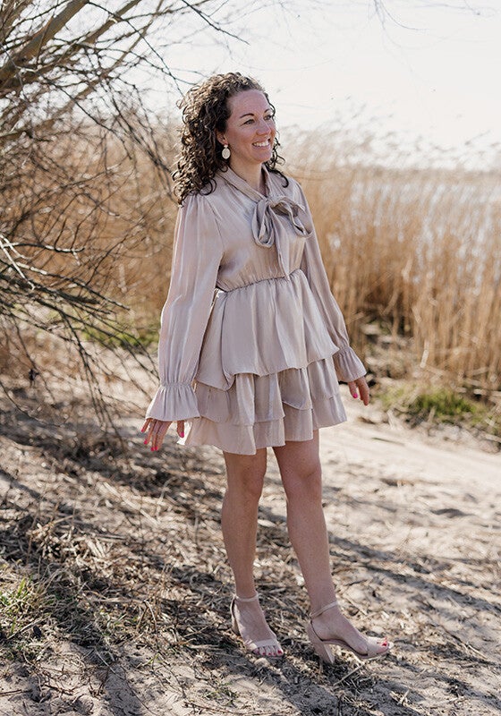Prachtig champagne kleurig jurkje geschikt voor korte meiden/dames.