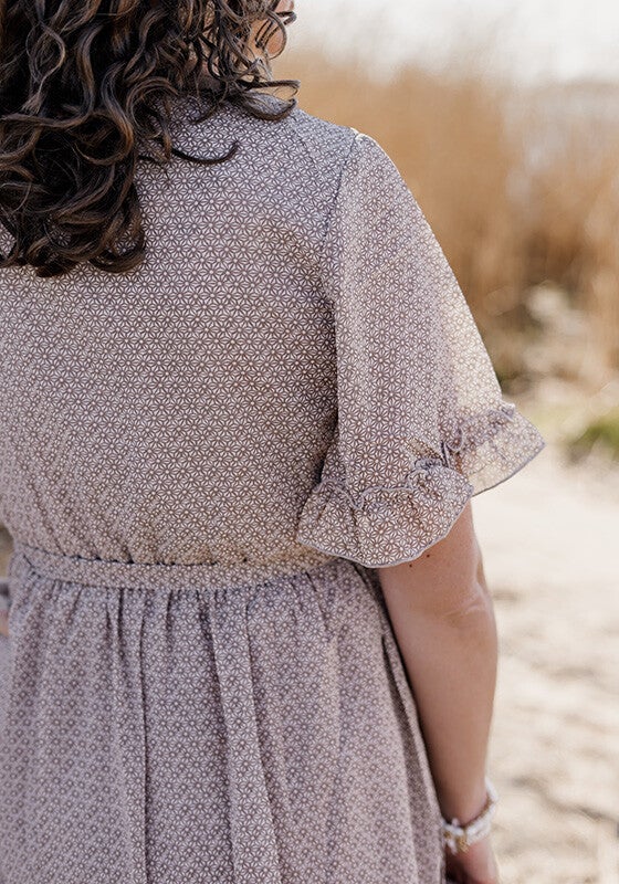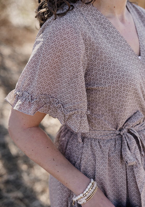 Deze elegante jurk is de perfecte combinatie van vrouwelijk en speels. De jurk heeft een V-hals, bevat een onderjurk en een elastische taille met strikceintuur, waardoor hij prachtig aansluit op het lichaam. De korte mouwen met subtiele ruffle-details geven een romantische touch. De asymmetrische rok met volants zorgt voor een speels en zwierig effect bij elke beweging.