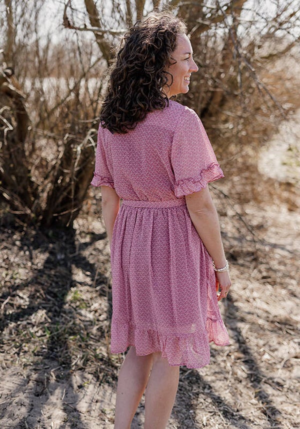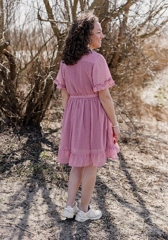 La Flor jurk korte mouw bloem - roze