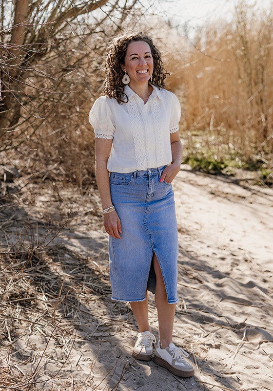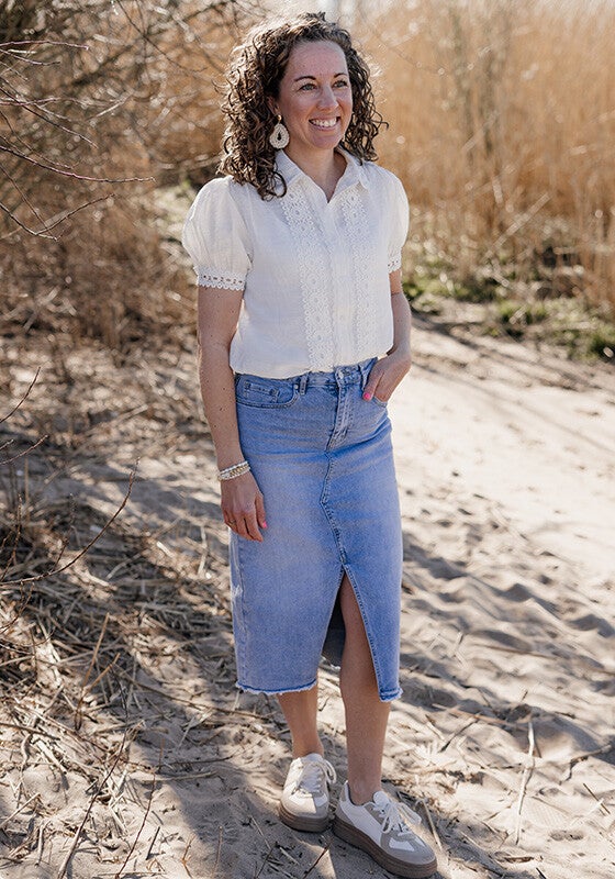 Prachtige blouse met broderie details in witte kleur, valt goed op maat. Verkrijgbaar in maat S/M, M/L en L/XL. Draag je van blousjes vaak maat M? Dan adviseer ik maat S/M omdat deze aan de onderkant mooi op lengte valt. Perfect om in een rok of broek te dragen!