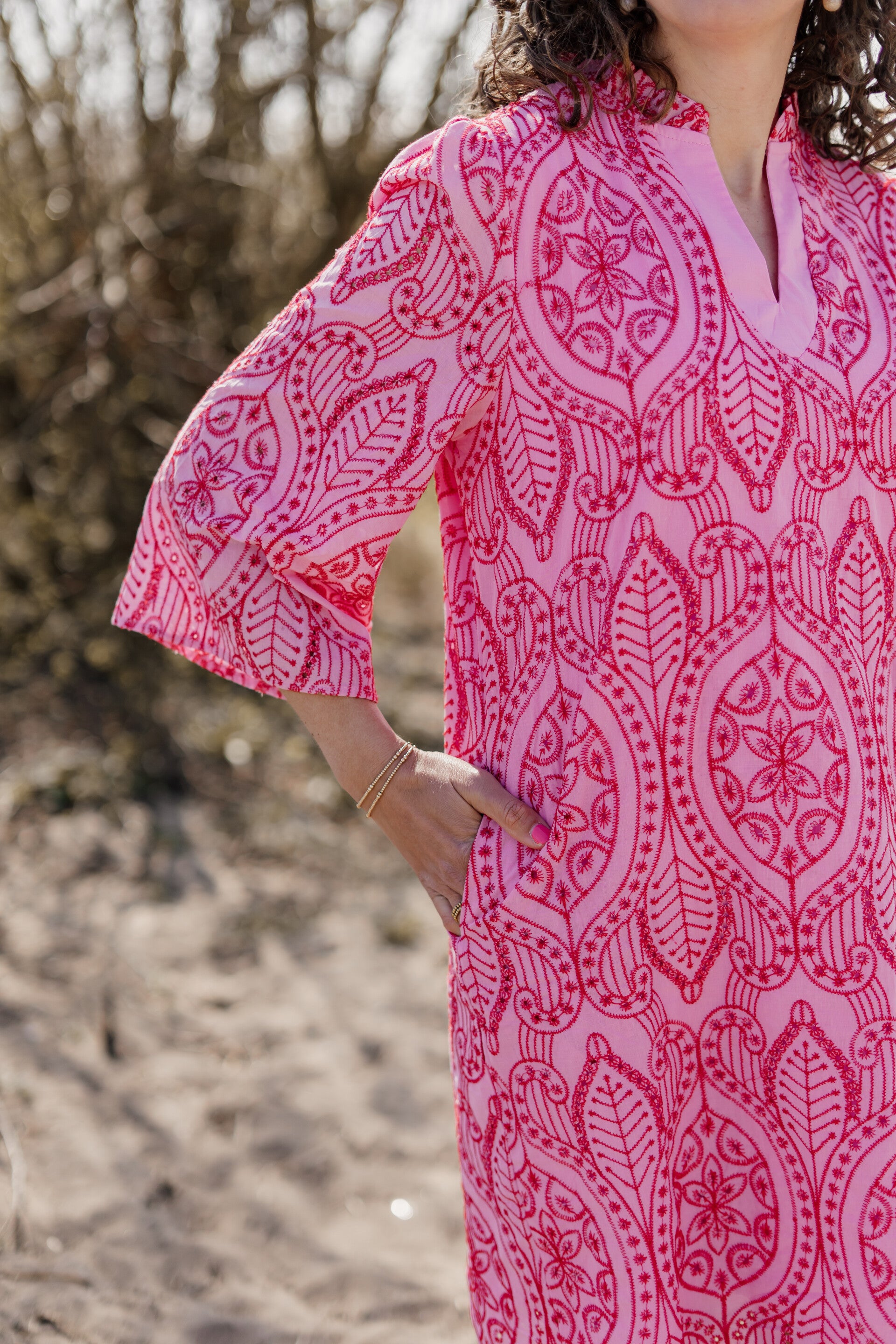 Azzurro broderie jurk - roze