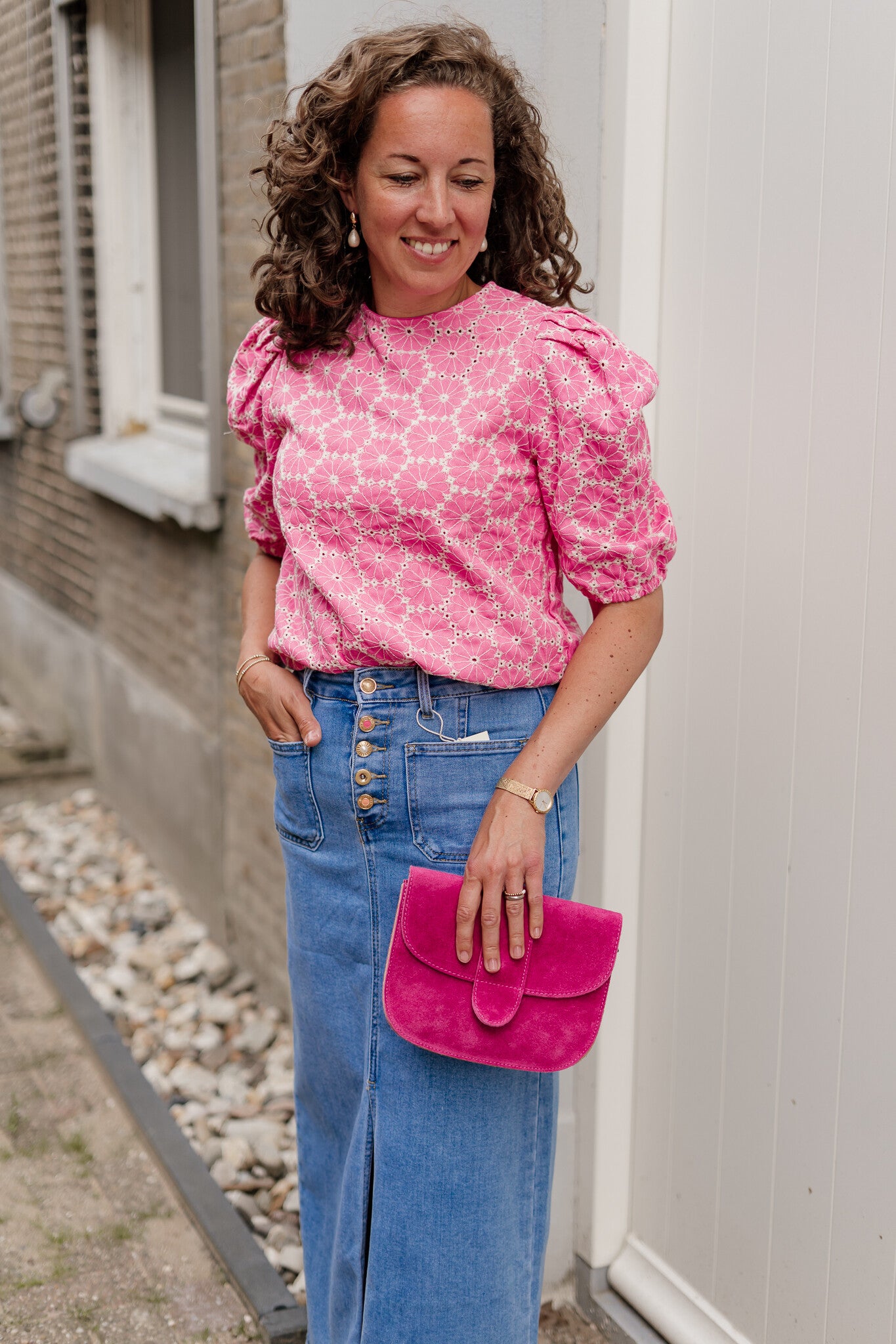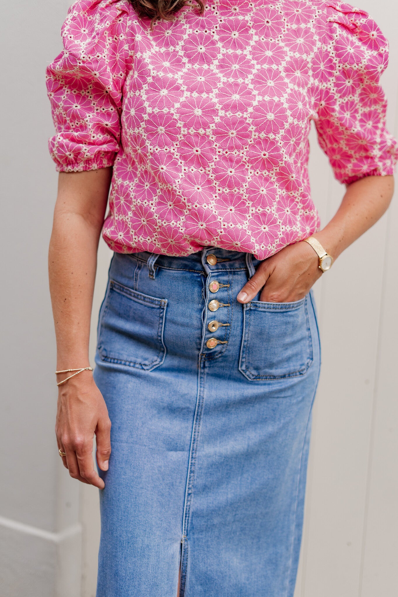 Azzurro broderie blouse fuschia