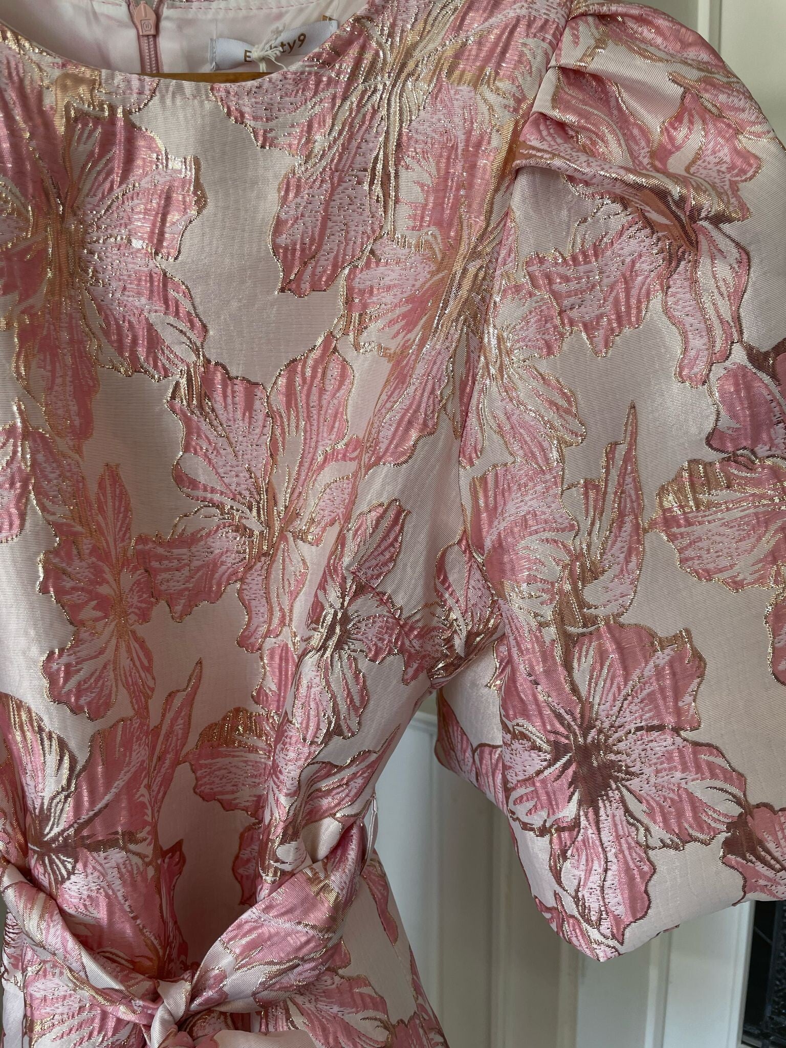La Flor jurk bloemen grote pofmouw - roze