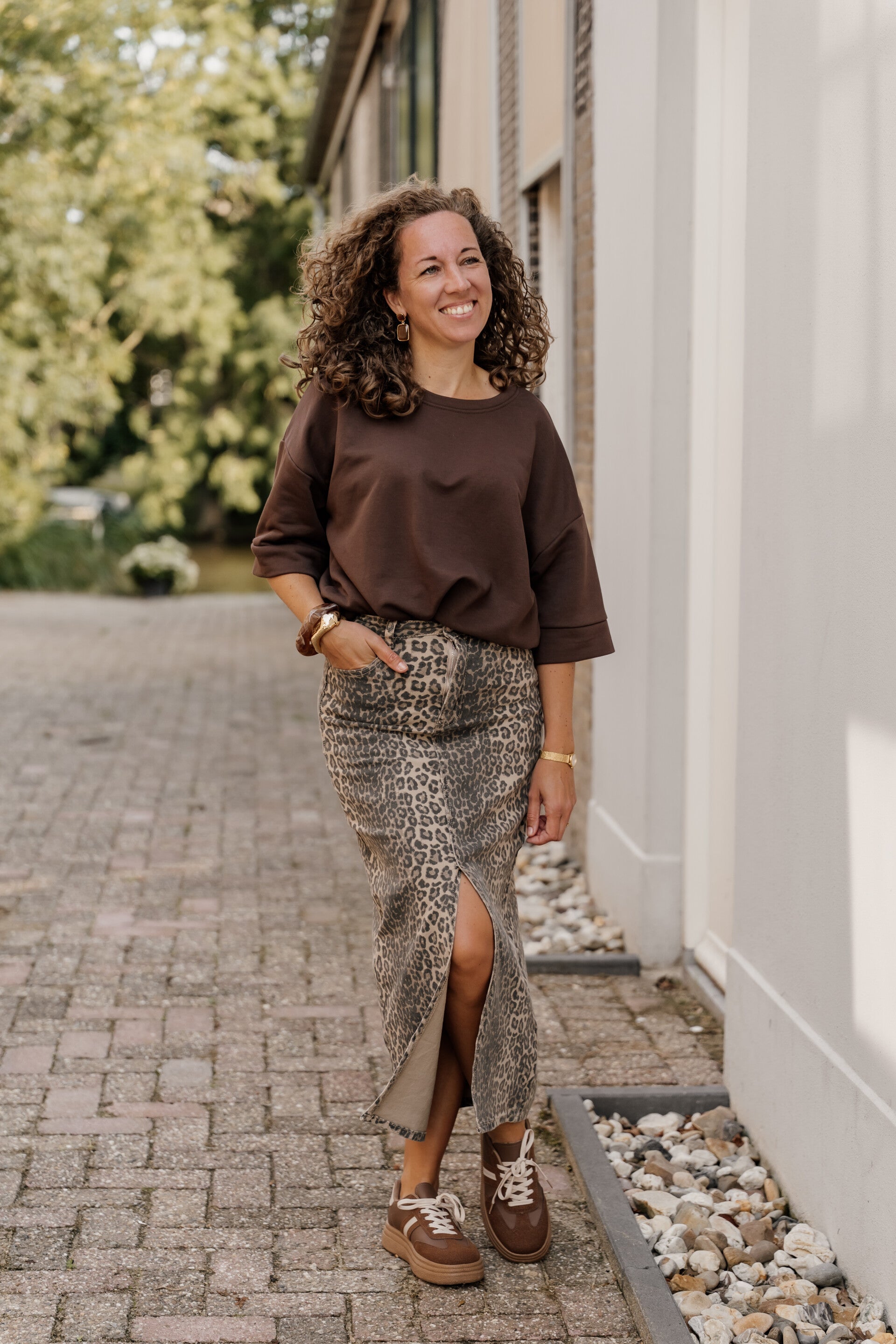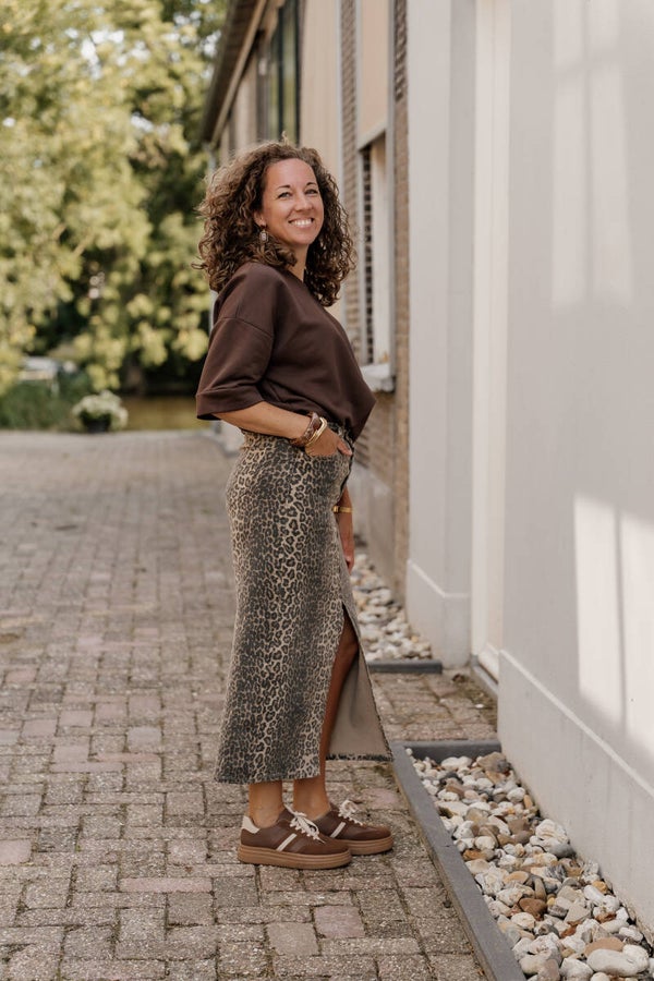 Verkrijgbaar in de maten XS t/m XL. De rok valt goed op maat. Mariëlle draagt maat S. Twijfel je tussen twee maten? Dan kun je het beste de grootste maat kiezen.
