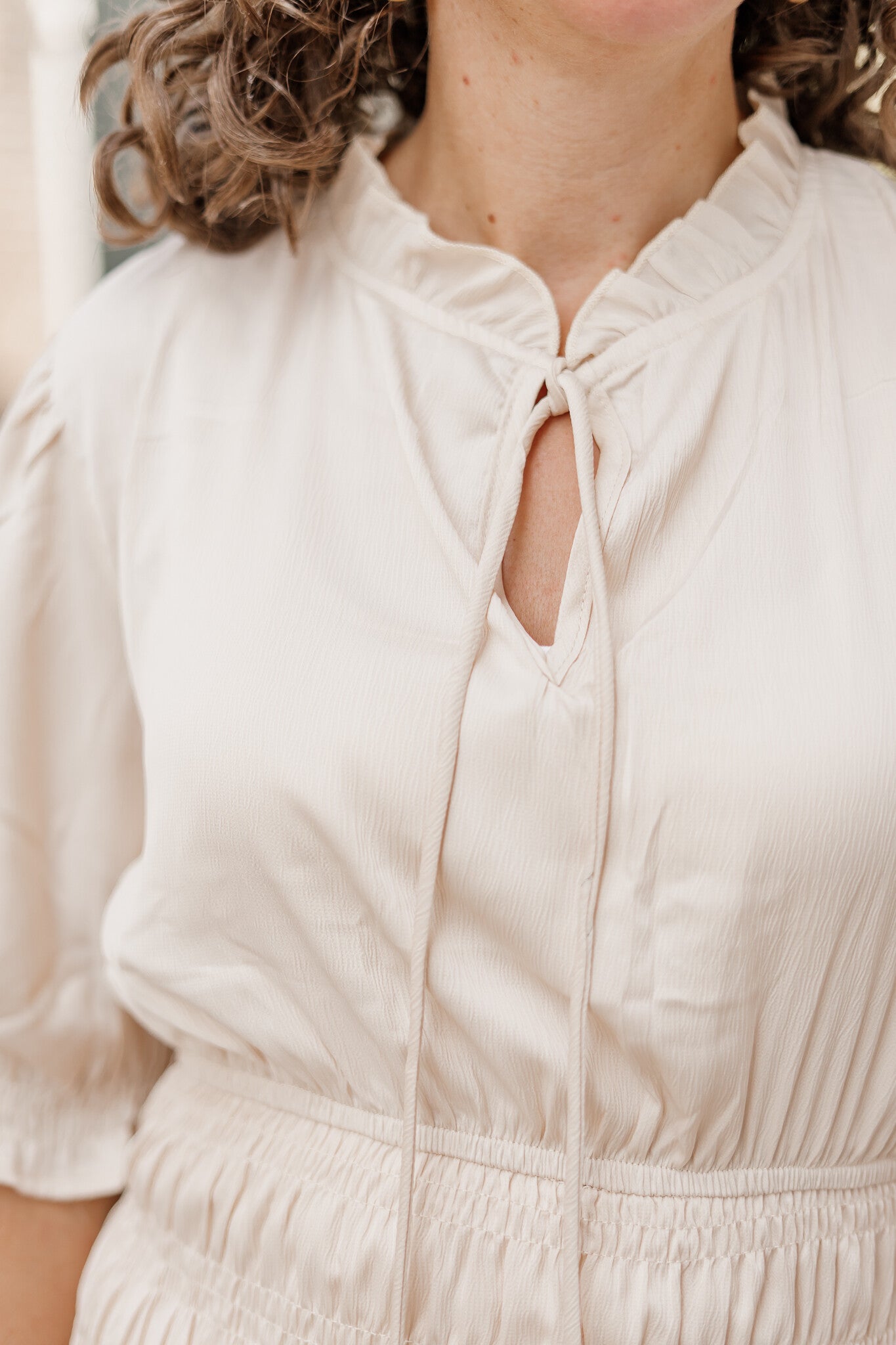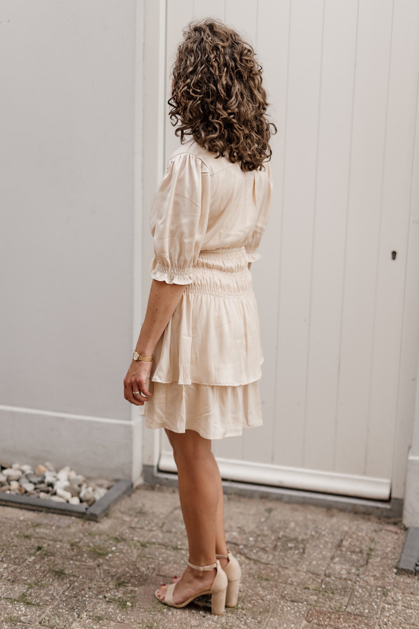 Geweldig must-have jurkje van het merk Azzurro in mooie neutrale beige kleur. Lengte is 94 cm.