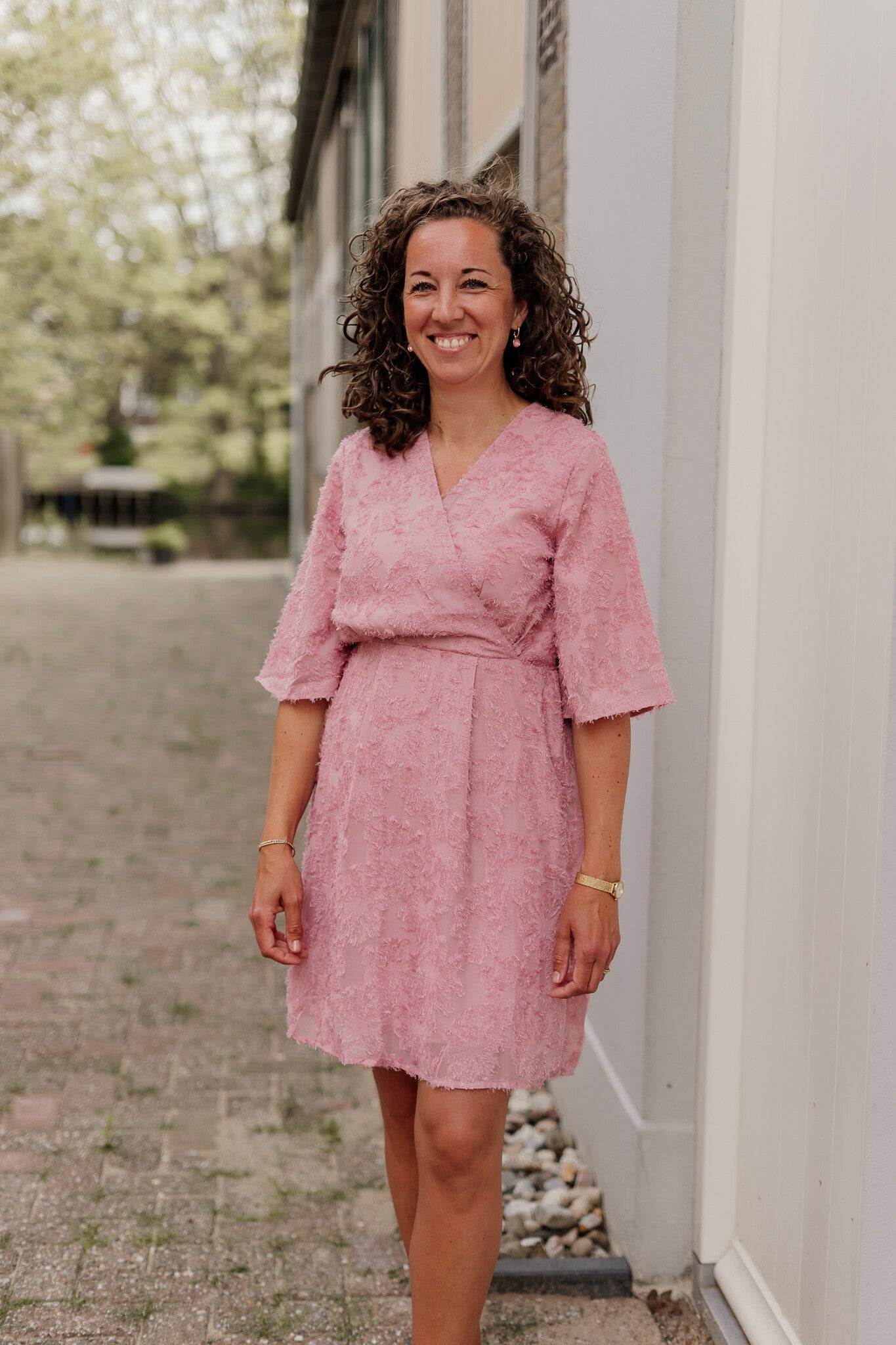 Het jurkje heeft een elegante uitstraling dankzij de driekwart mouwen, V-hals met een overslag en de mooie pasvorm. Perfect om een casual te dragen of chique voor een gelegenheid. Het jurkje is gemaakt van hoogwaardige materialen en zit daardoor heerlijk comfortabel.