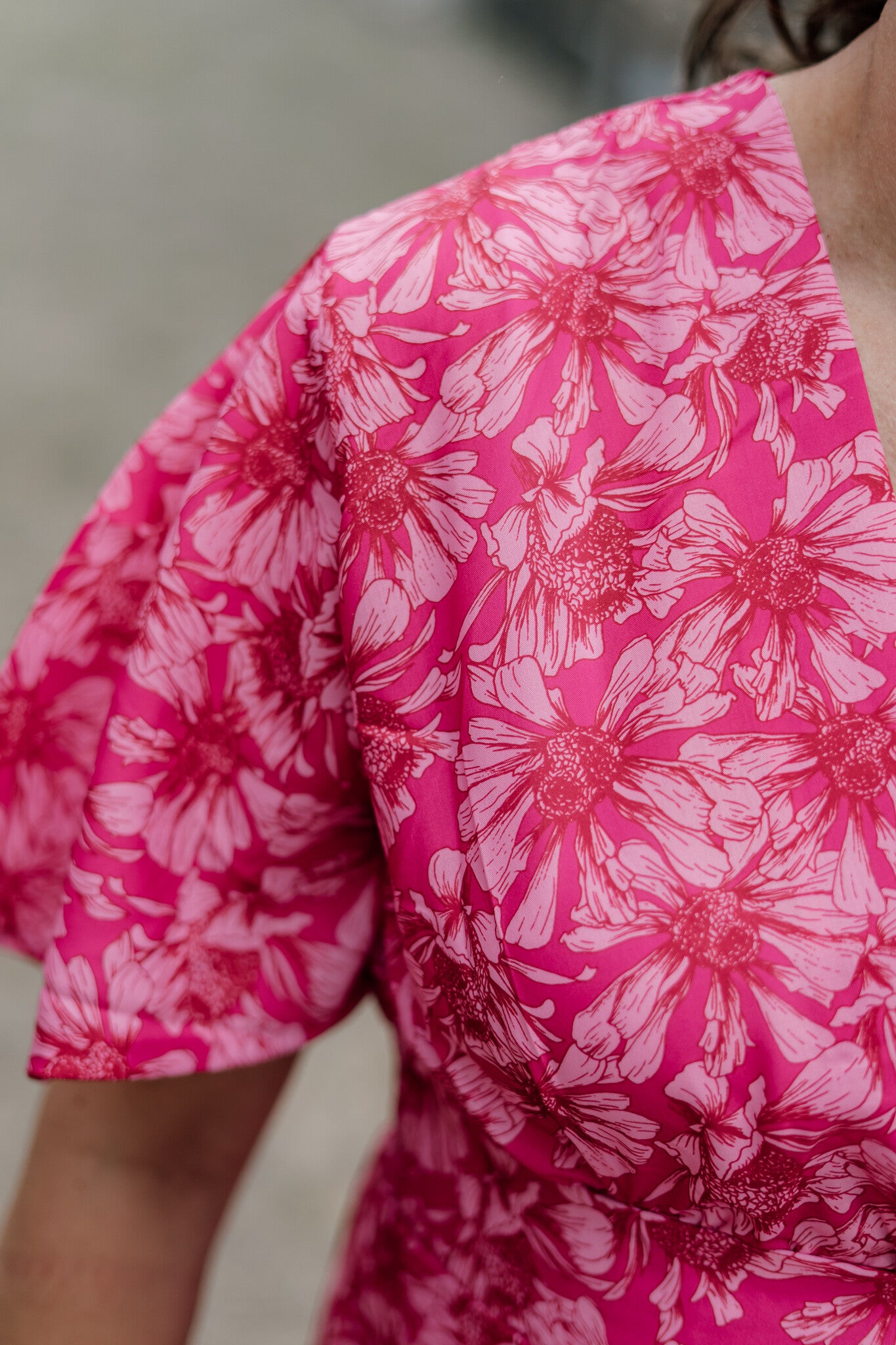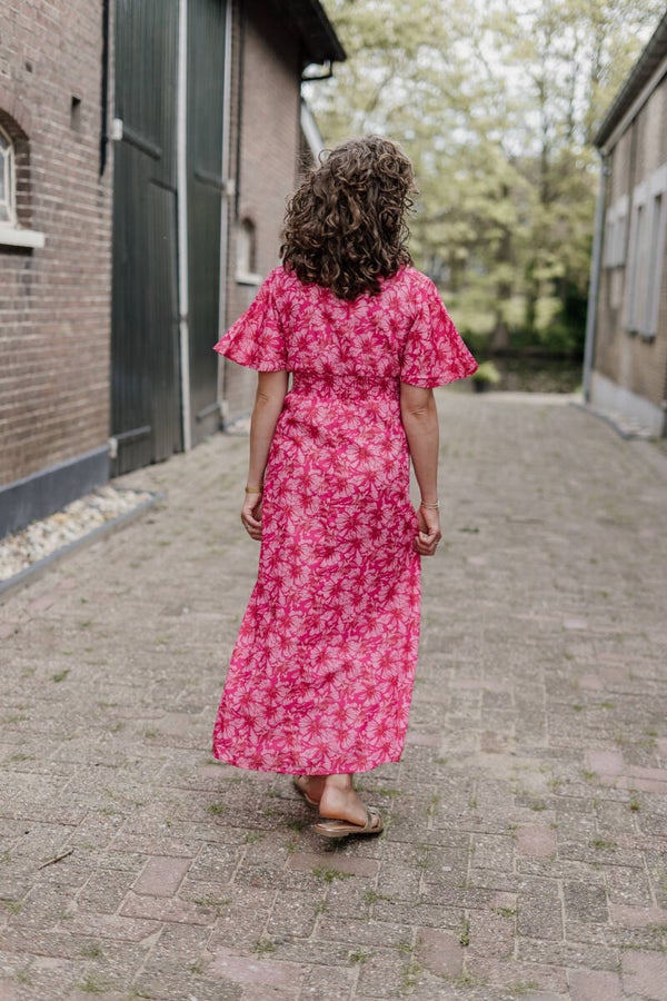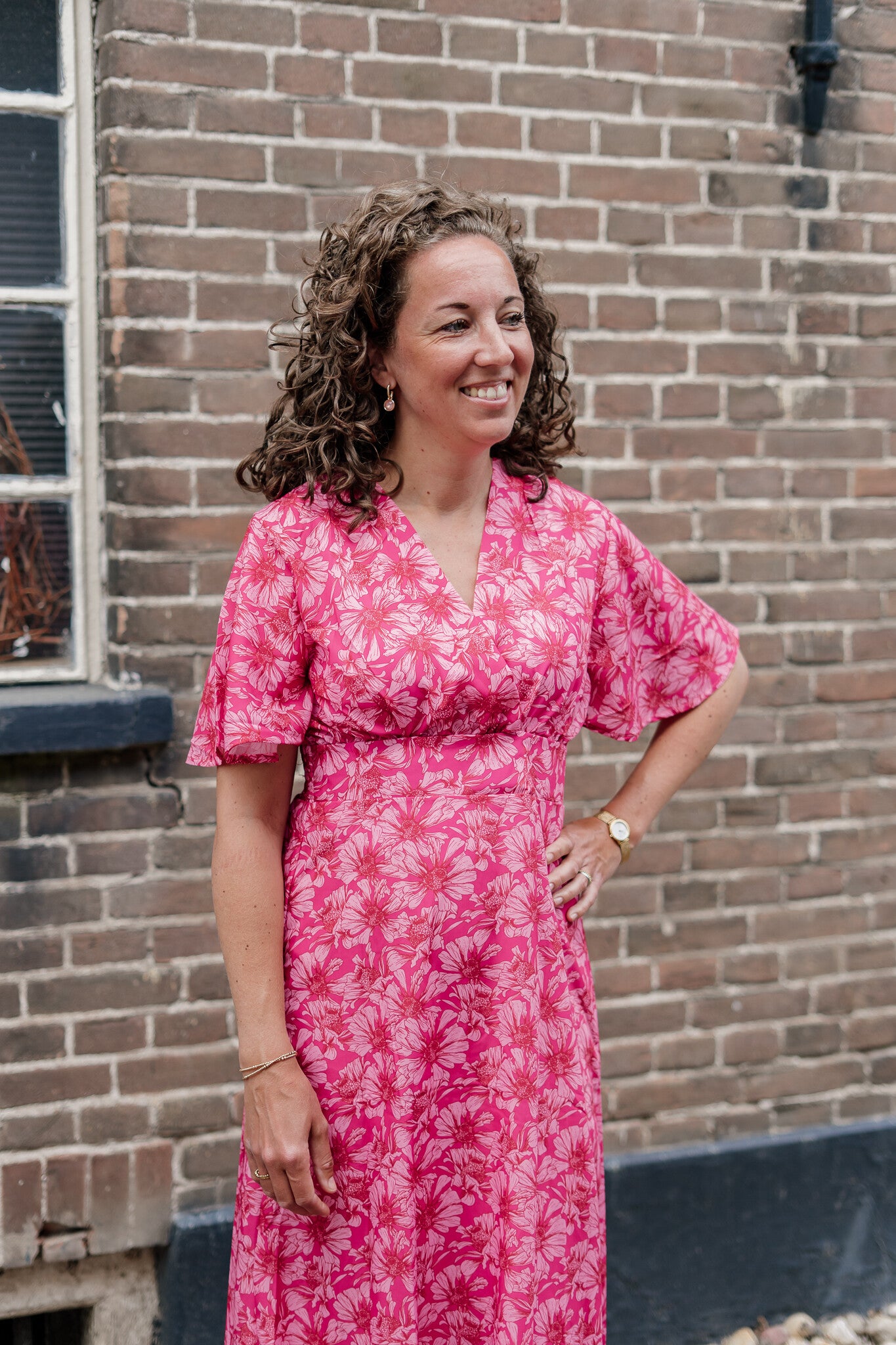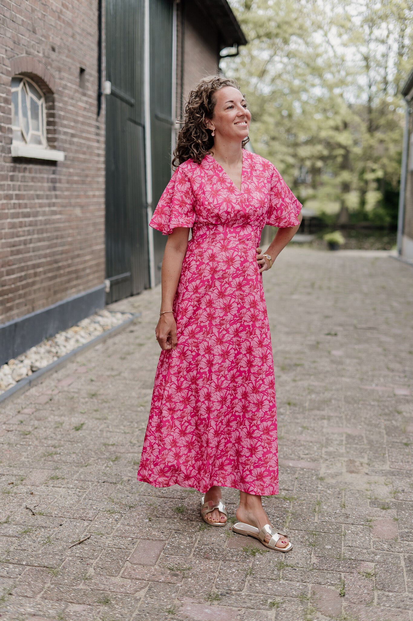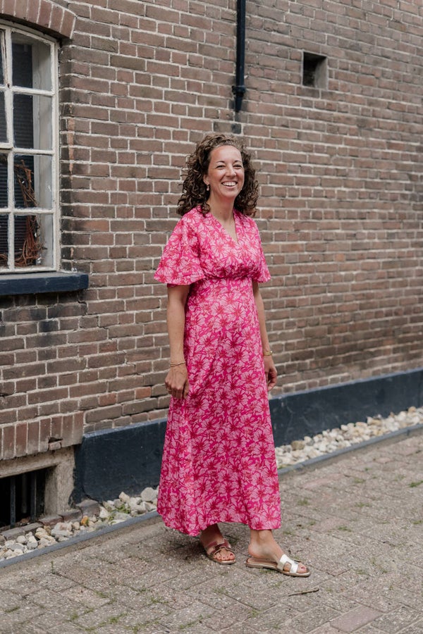 De jurk is 134 centimeter lang. Verkrijgbaar in maat S/M en L/XL. Mariëlle draagt maat S/M en is 1.68 cm lang. Materiaal: 50% viscose, 50% polyester