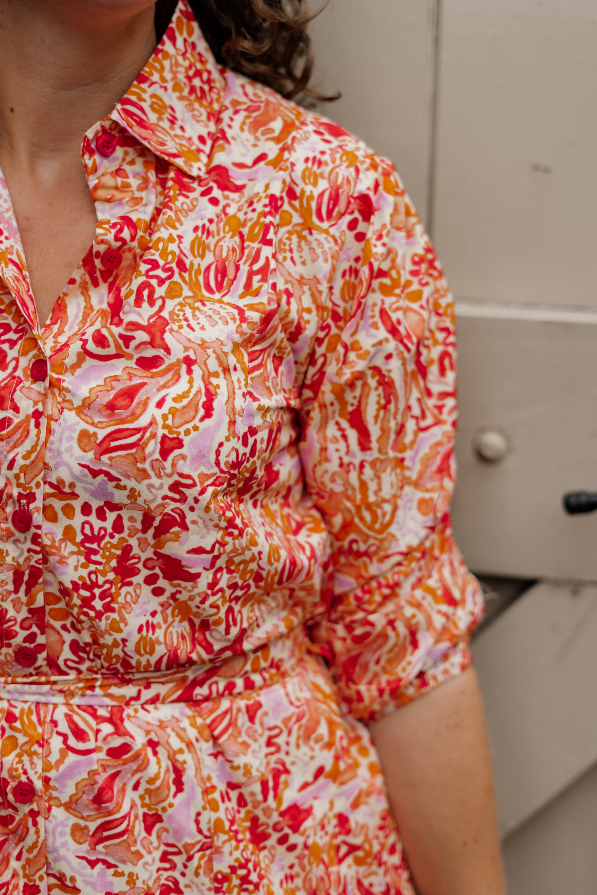 Azzurro midi jurk print - wit oranje