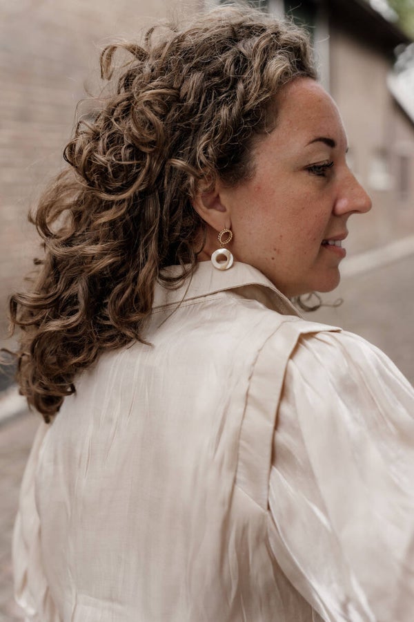 De blouse is verkrijgbaar in maat S, M en L - valt goed op maat. Mariëlle draagt maat S.