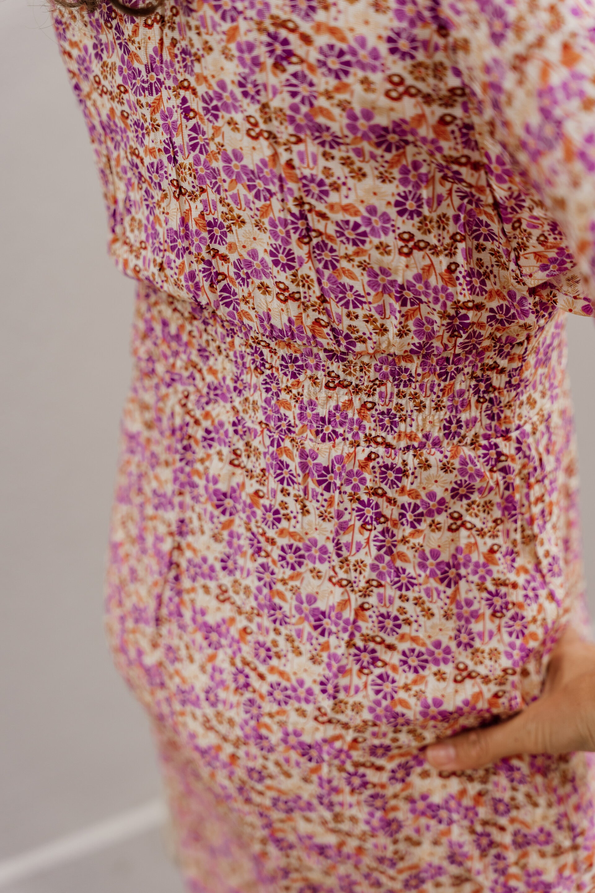 De halslijn van deze jurk valt bovenaan mooi dicht waardoor je geen inkijk hebt bij de decolleté. De jurk bevat een elastieken boordje aan de achterzijde.