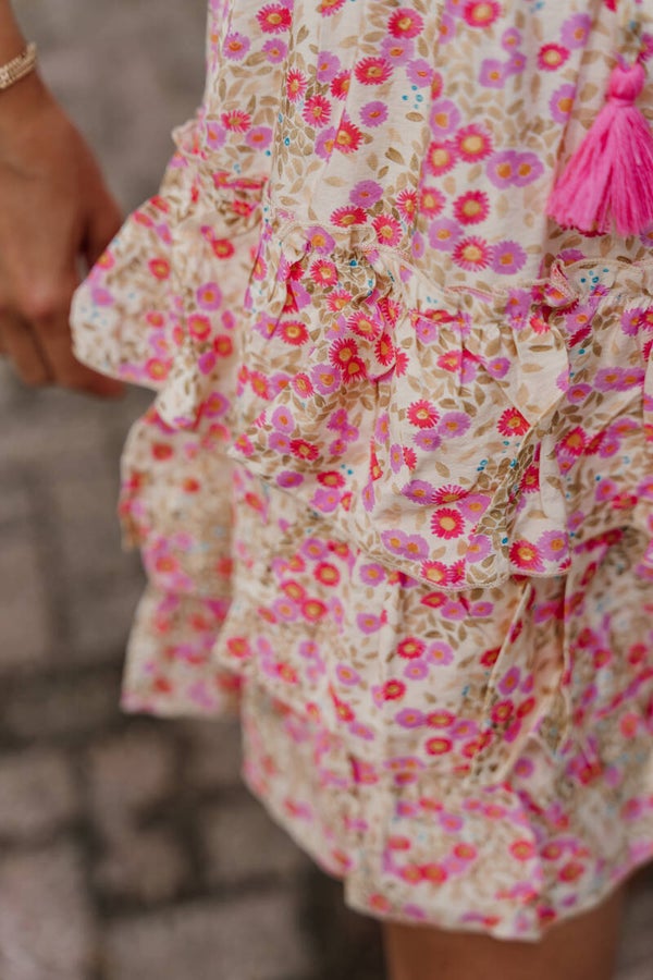 Azzurro korte jurk print bloemen - roze