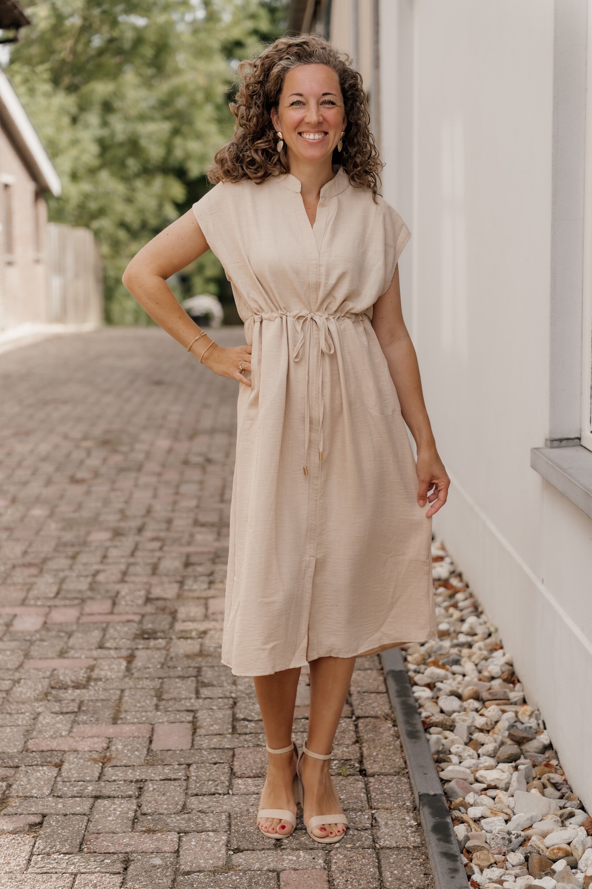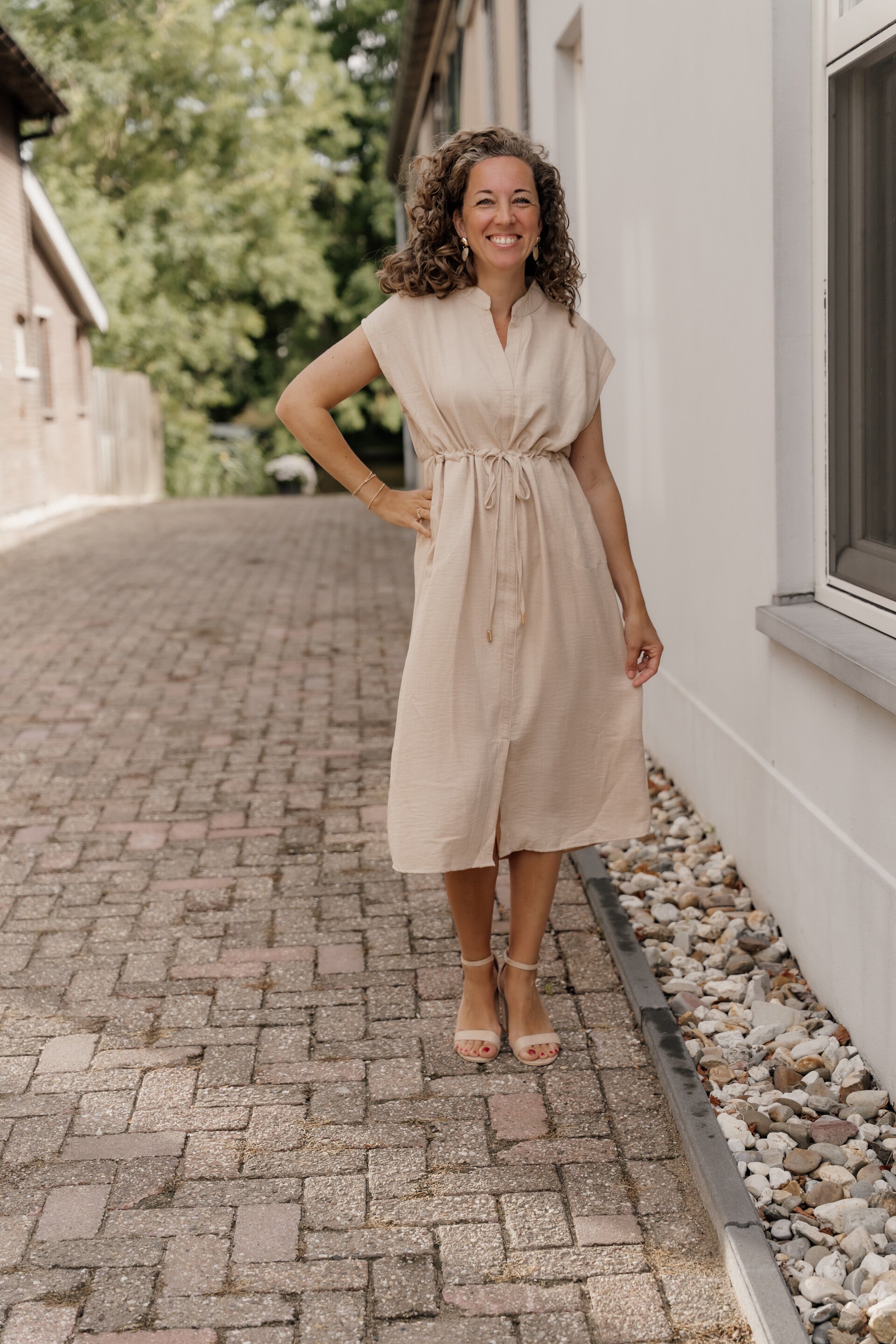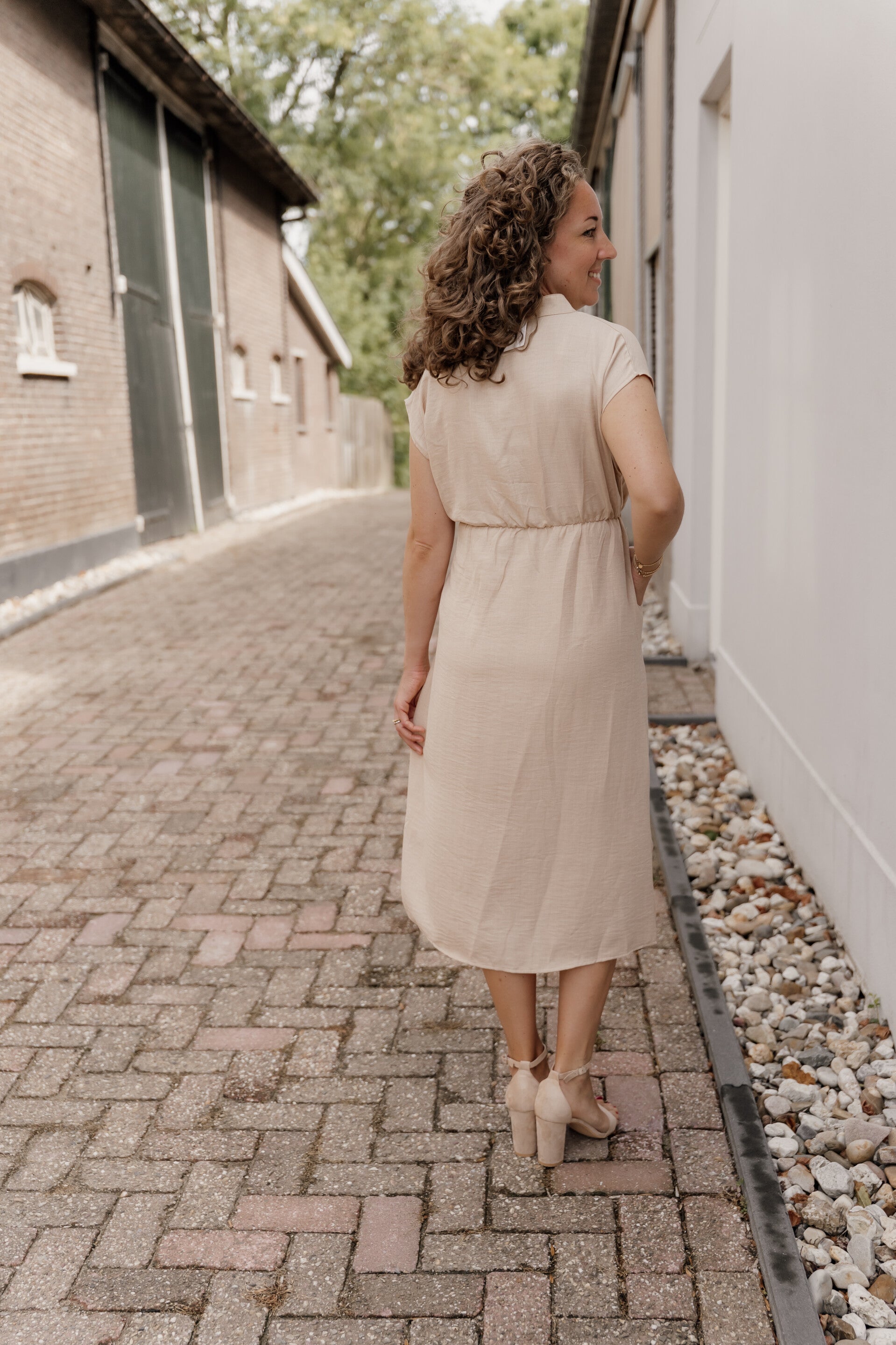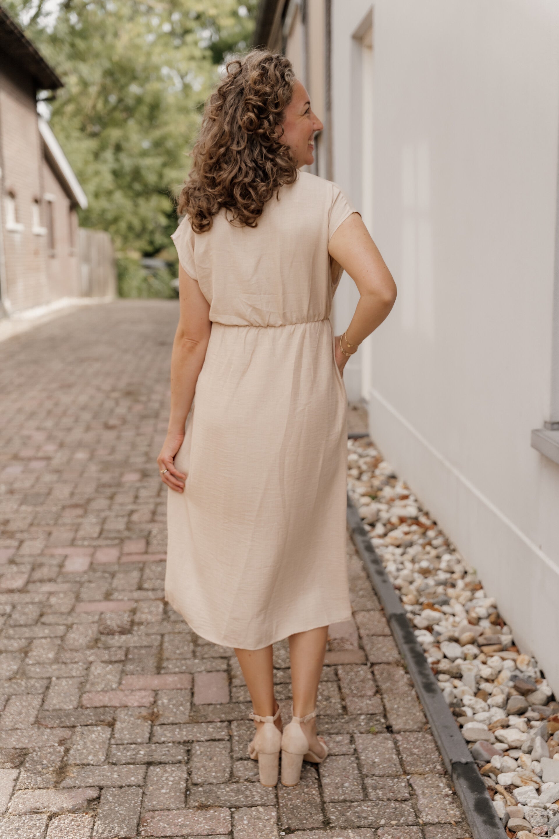 Azzurro midi jurk - beige