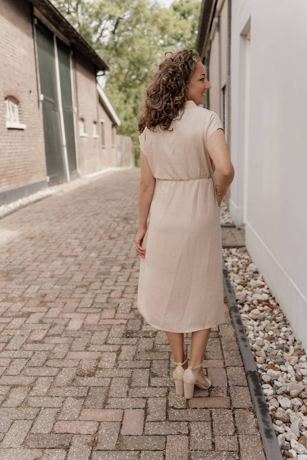 Favoriete jurk van het merk Azzurro! Het jurkje is lekker zomers én heel geschikt qua lengte. De jurk bevat aan voorkant touwtjes, die je aan kunt trekken waardoor het jurkje tailleert.