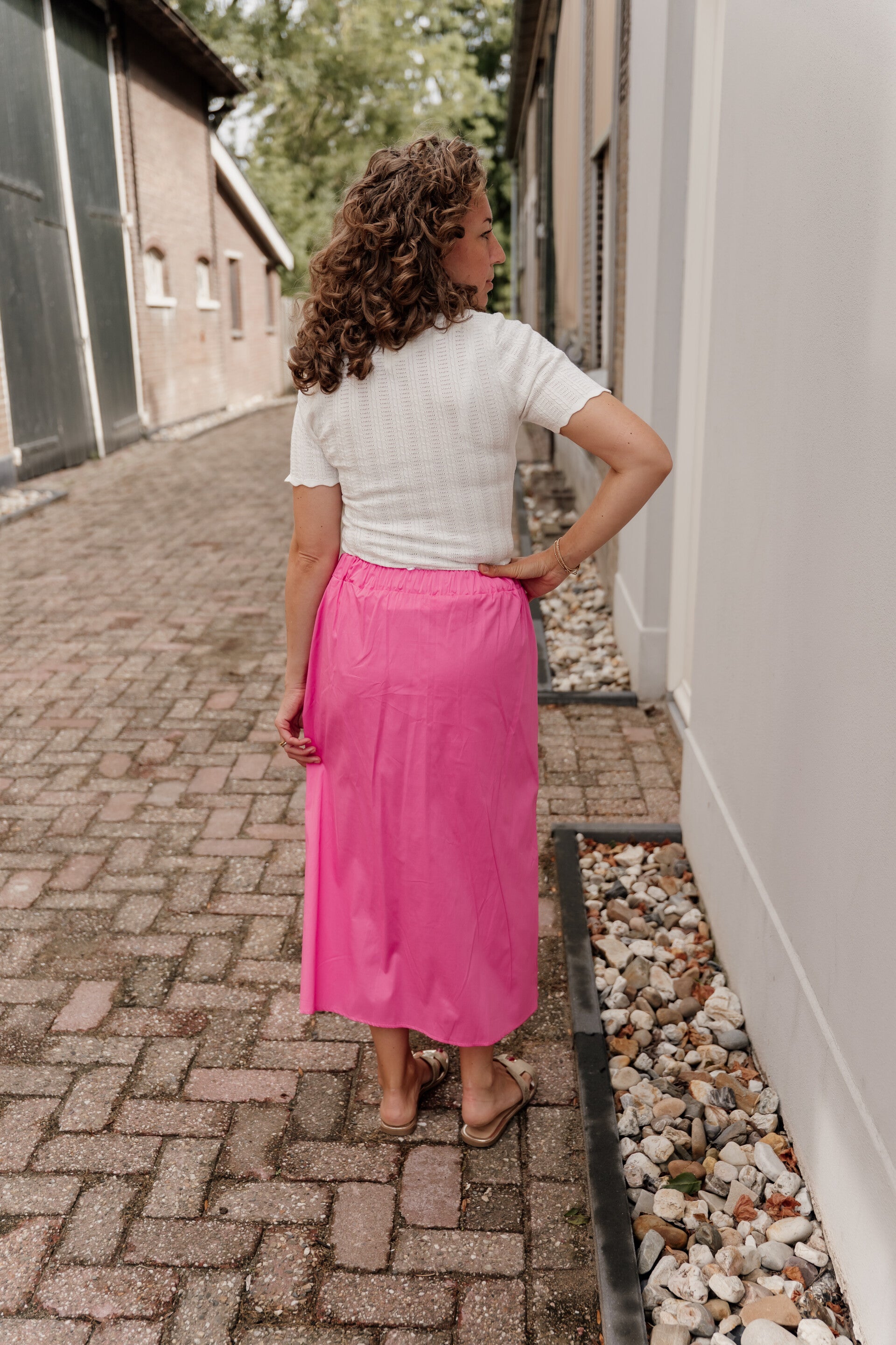 Deze luchtige zomerrok is een absolute must-have voor warme dagen! Met een fijne lengte van 86 cm en een elegante split aan de voorkant, straalt deze rok vrouwelijkheid en comfort uit. De split overlapt subtiel, zodat de rok nooit te ver open valt - perfect doordacht design!