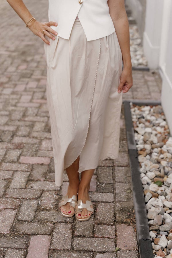 Deze luchtige zomerrok is een absolute must-have voor warme dagen! Met een fijne lengte van 86 cm en een elegante split aan de voorkant, straalt deze rok vrouwelijkheid en comfort uit. De split overlapt subtiel, zodat de rok nooit te ver open valt - perfect doordacht design!