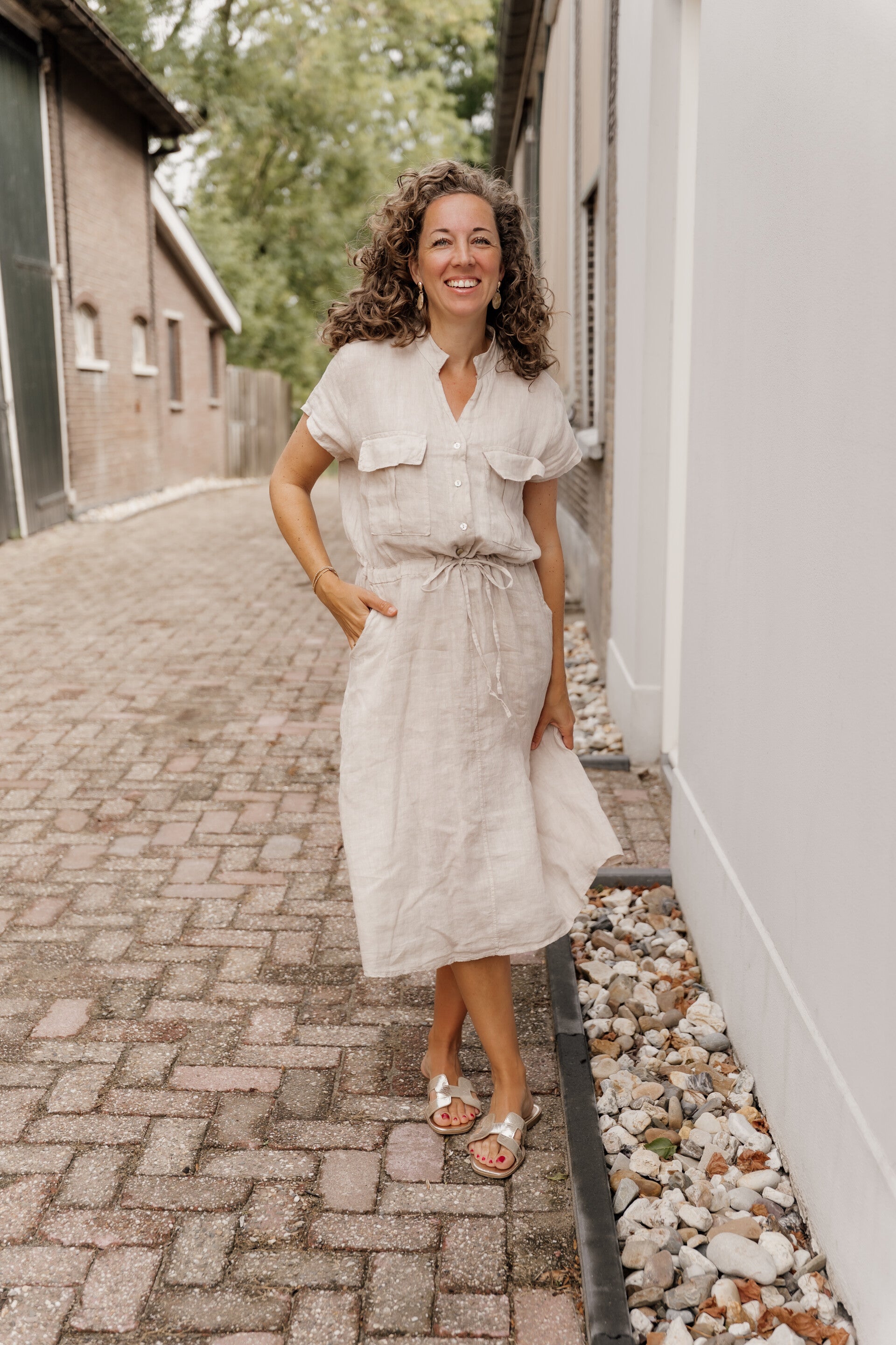 La Flor linnen jurk - beige