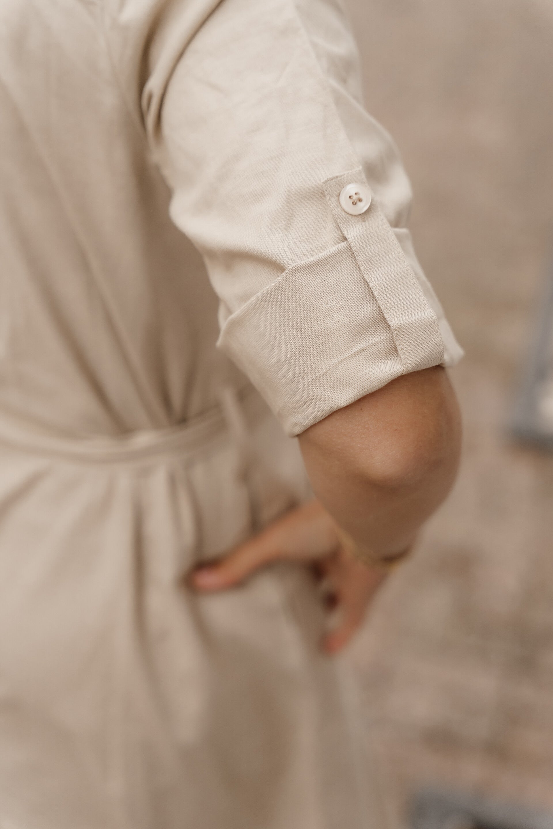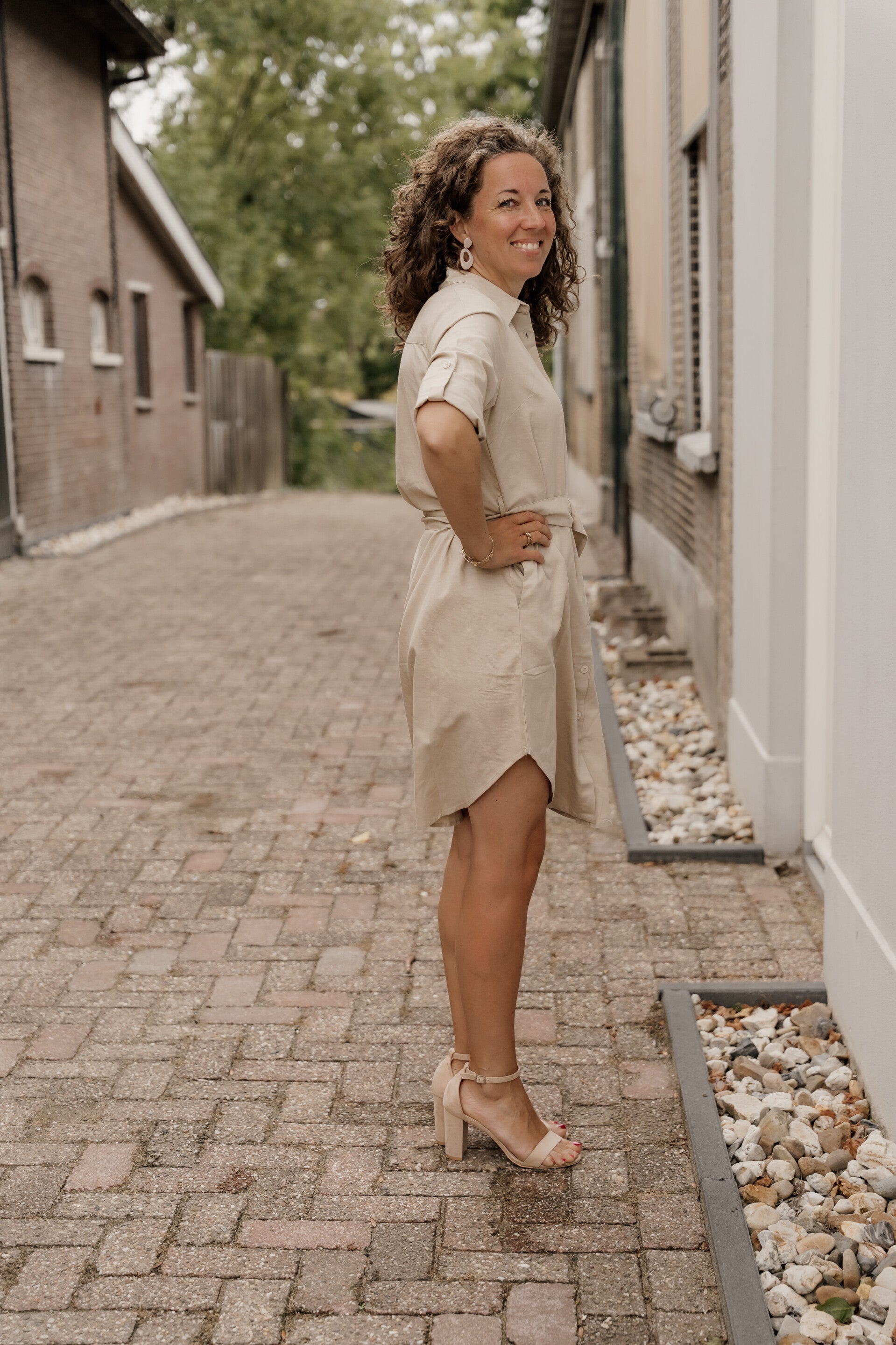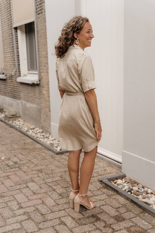 Fijn luchtige jurk van katoen met een kraag, 3/4 mouw met knoopjes en een bijpassende ceintuur.