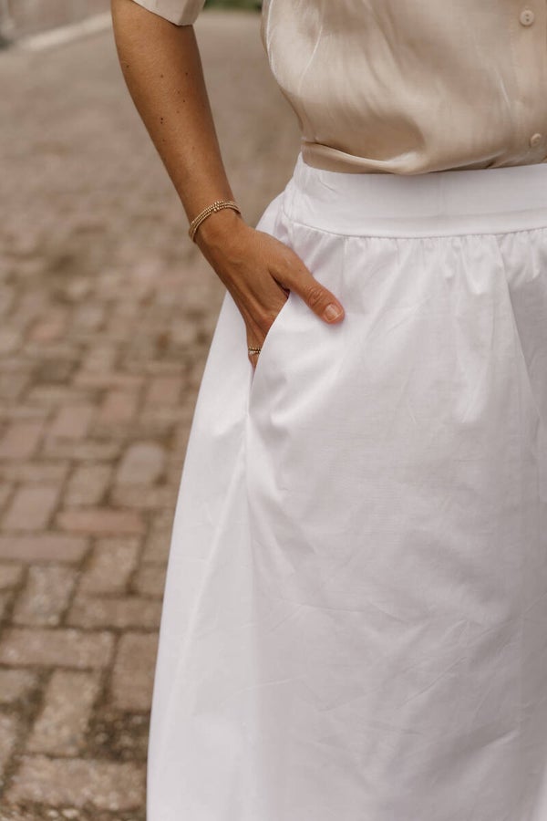 One sizeDe rok bevat een onderrok tot 3/4 van de rok waardoor deze bovenaan niet doorschijnt. Lengte van de rok is 84 cmMateriaal: 100% katoen