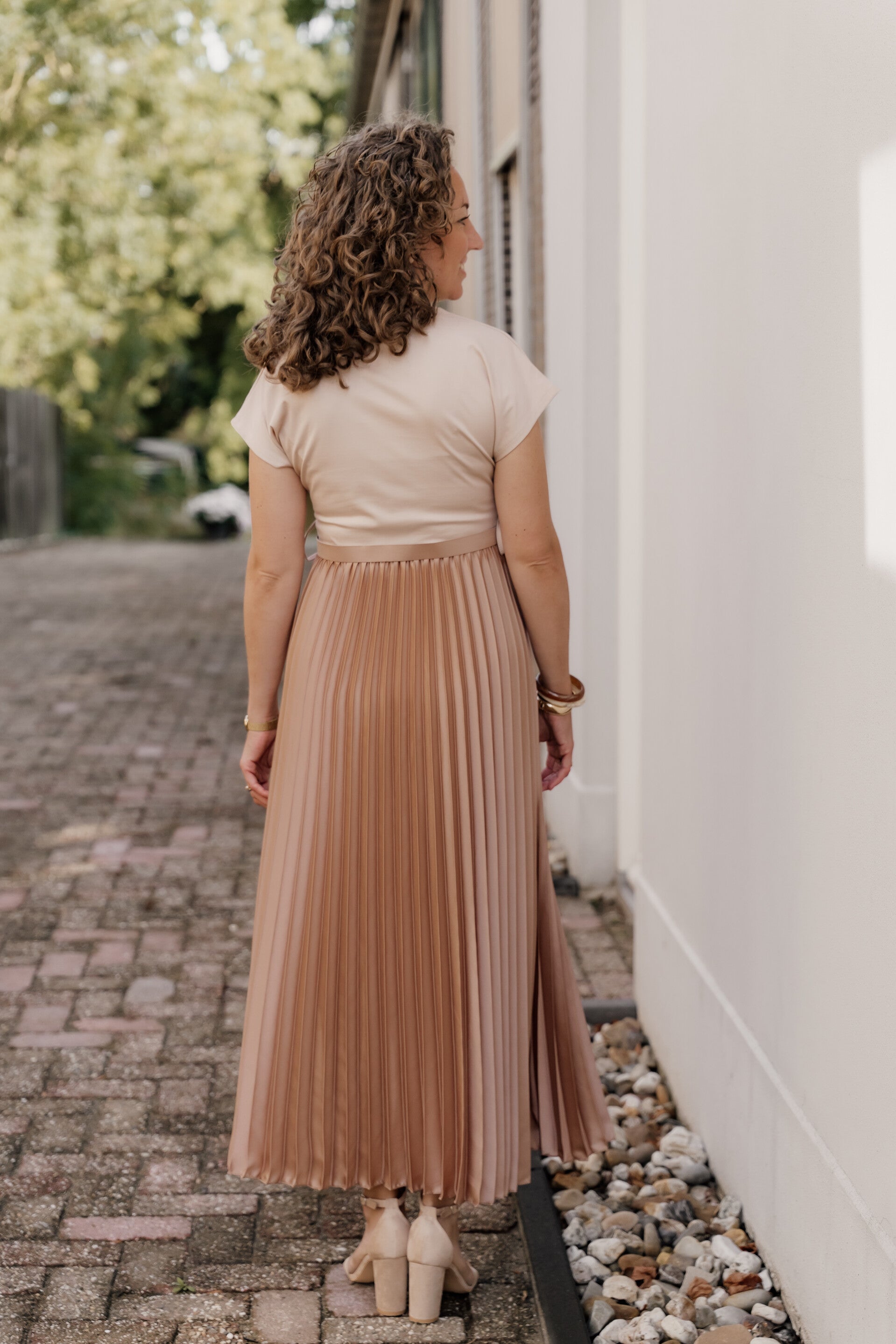 La Flor plissé jurk - beige
