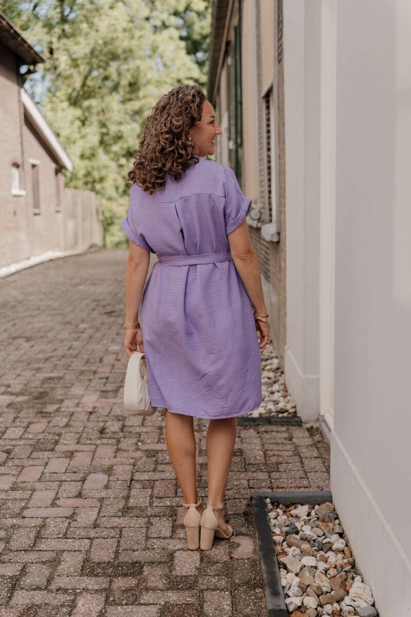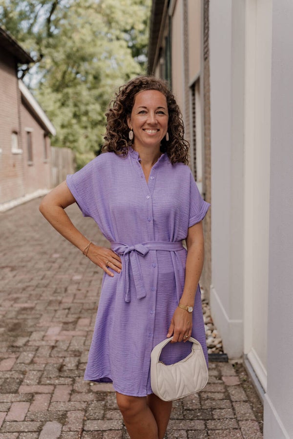 De jurk is verkrijgbaar in 2 nieuwe kleuren: lila en bruin.
