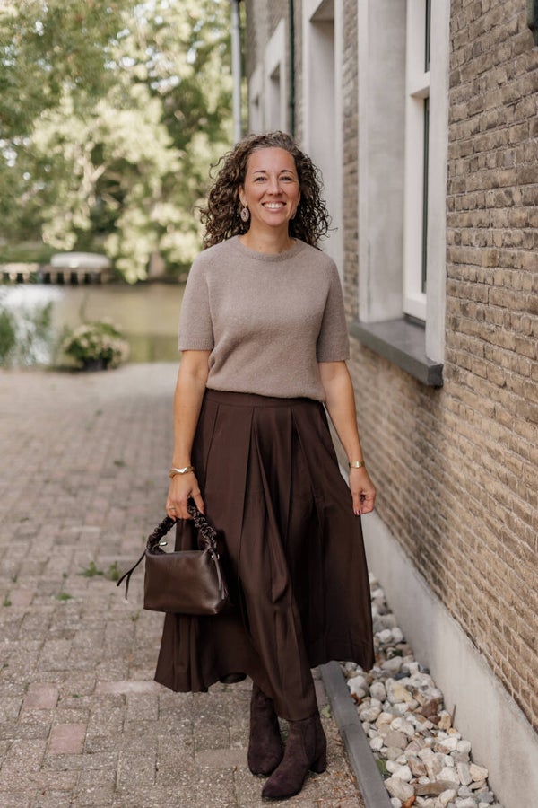 Of je hem nu combineert met een trui en laarzen voor een cozy najaarslook, of met een blouse en sandalen voor een zomerse vibe - deze rok kan altijd. Een veelzijdige basic die je eindeloos kunt stylen!