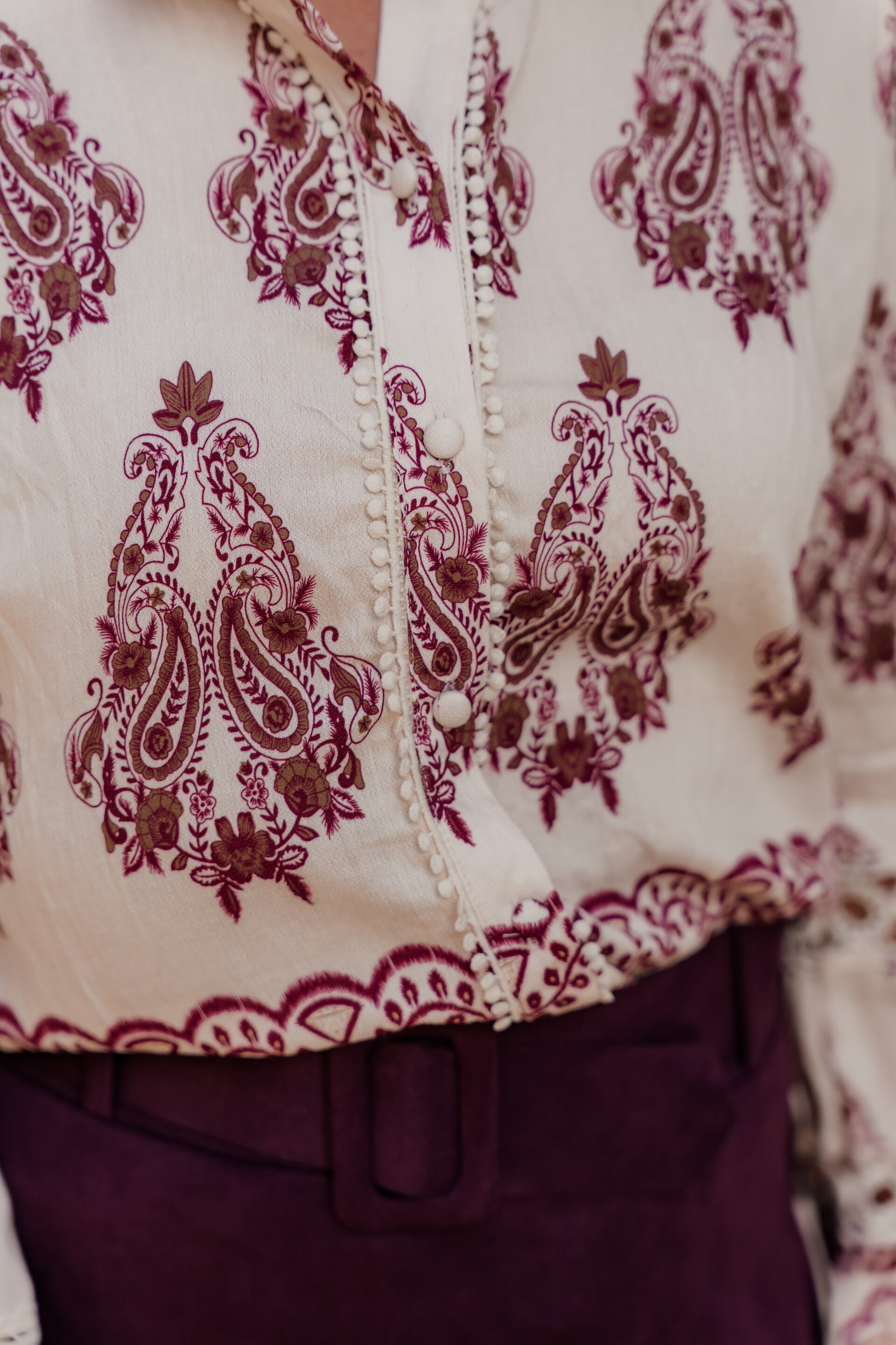 La Flor blouse paisley print ecru-bordeaux