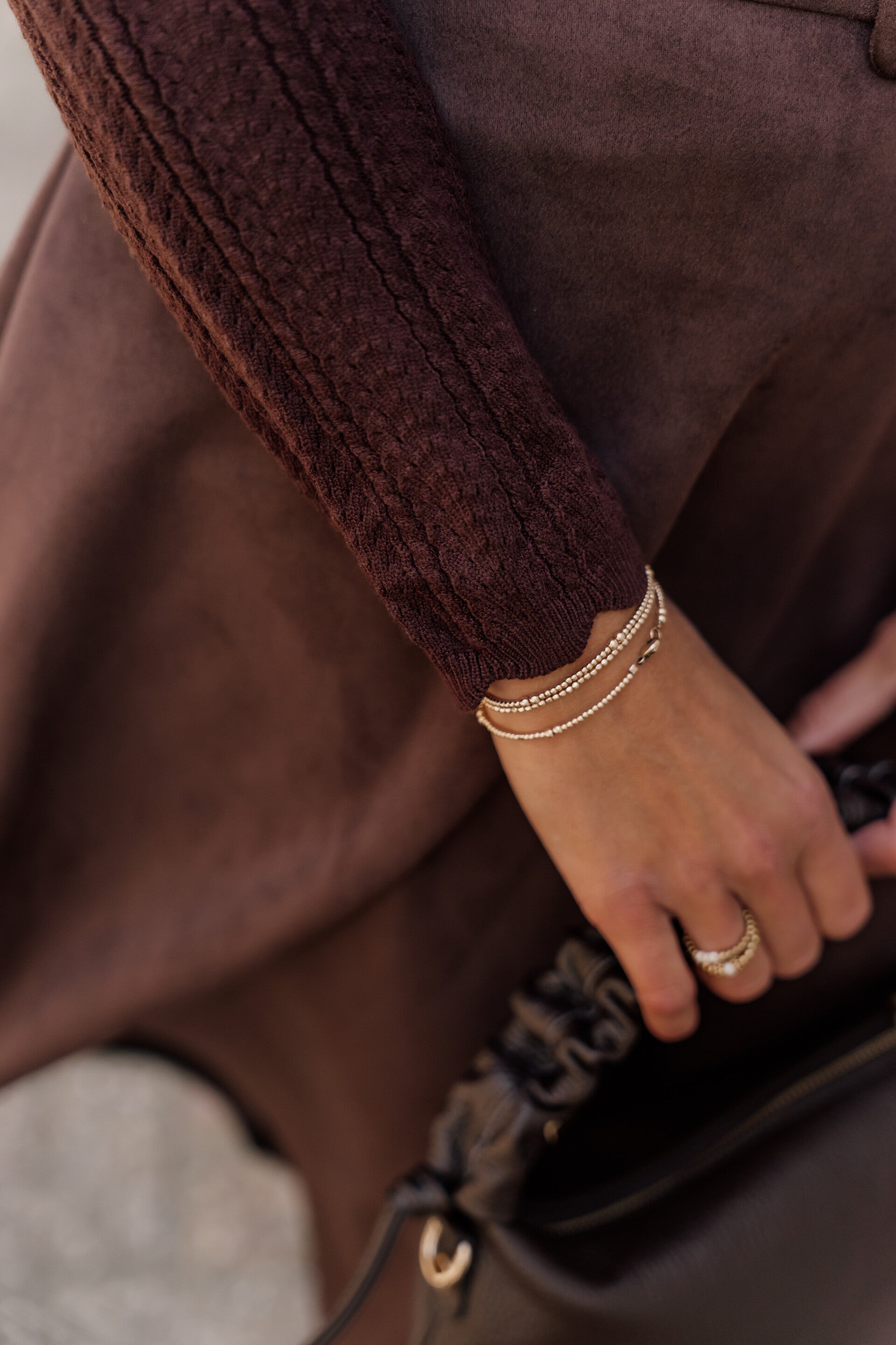 Dit stijlvolle truitje in een warme chocoladebruine kleur is perfect voor de herfst. De vrouwelijke V-hals is verfijnd afgewerkt met een sierlijke schulprand en de top bevat een werkje in de stof. De subtiele knoopjes geven het geheel een elegante touch.