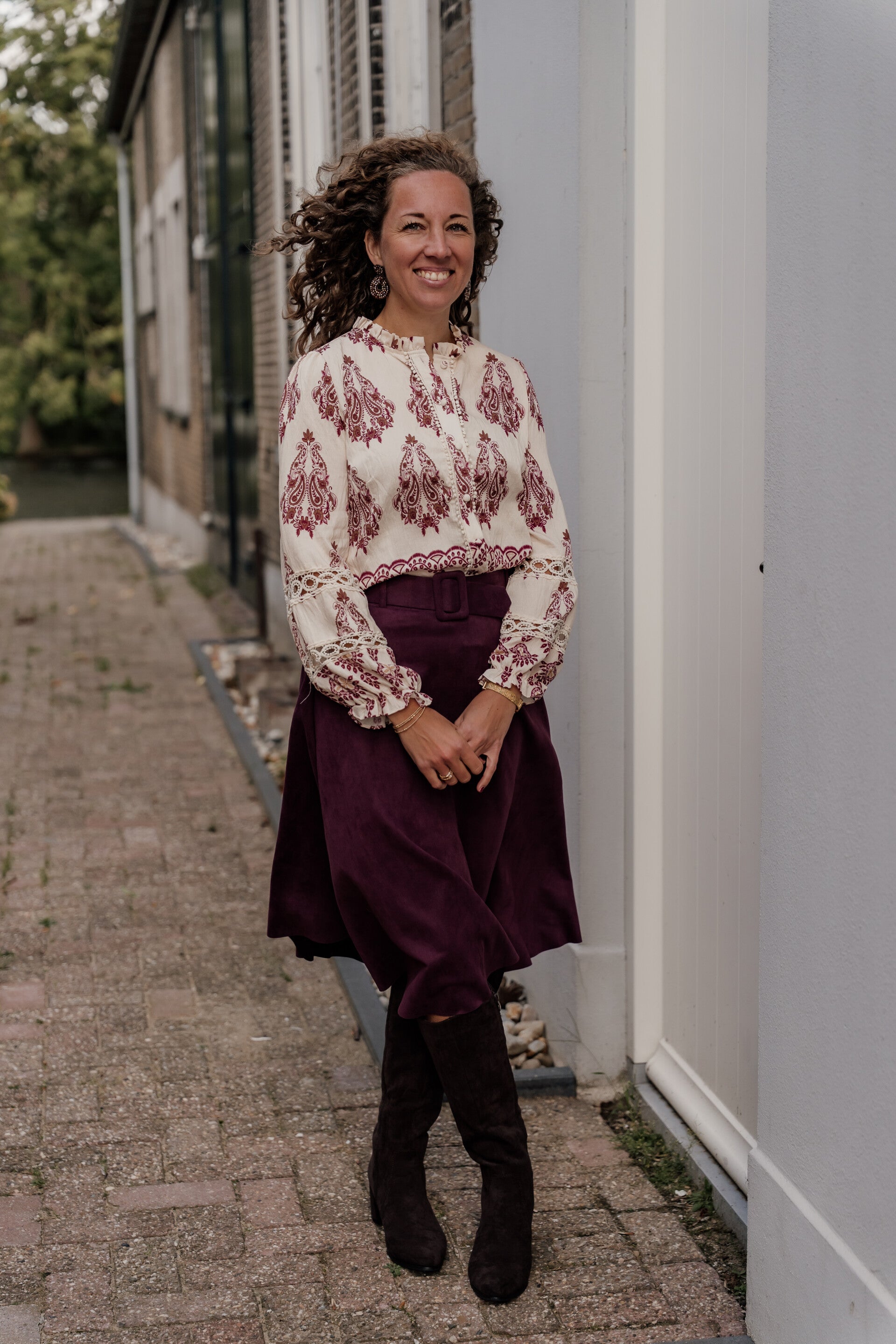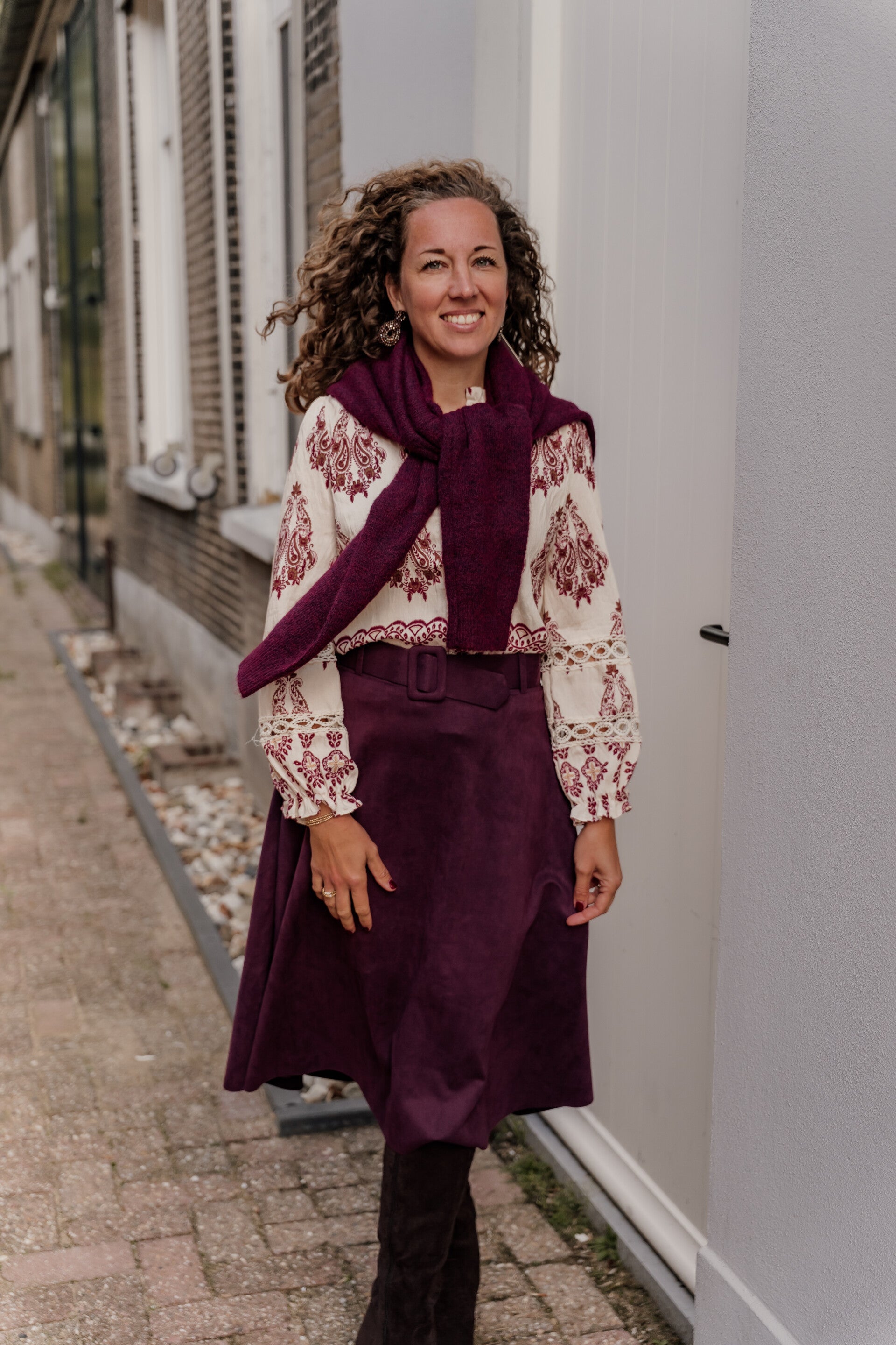 La Flor suède rok ceintuur - bordeaux