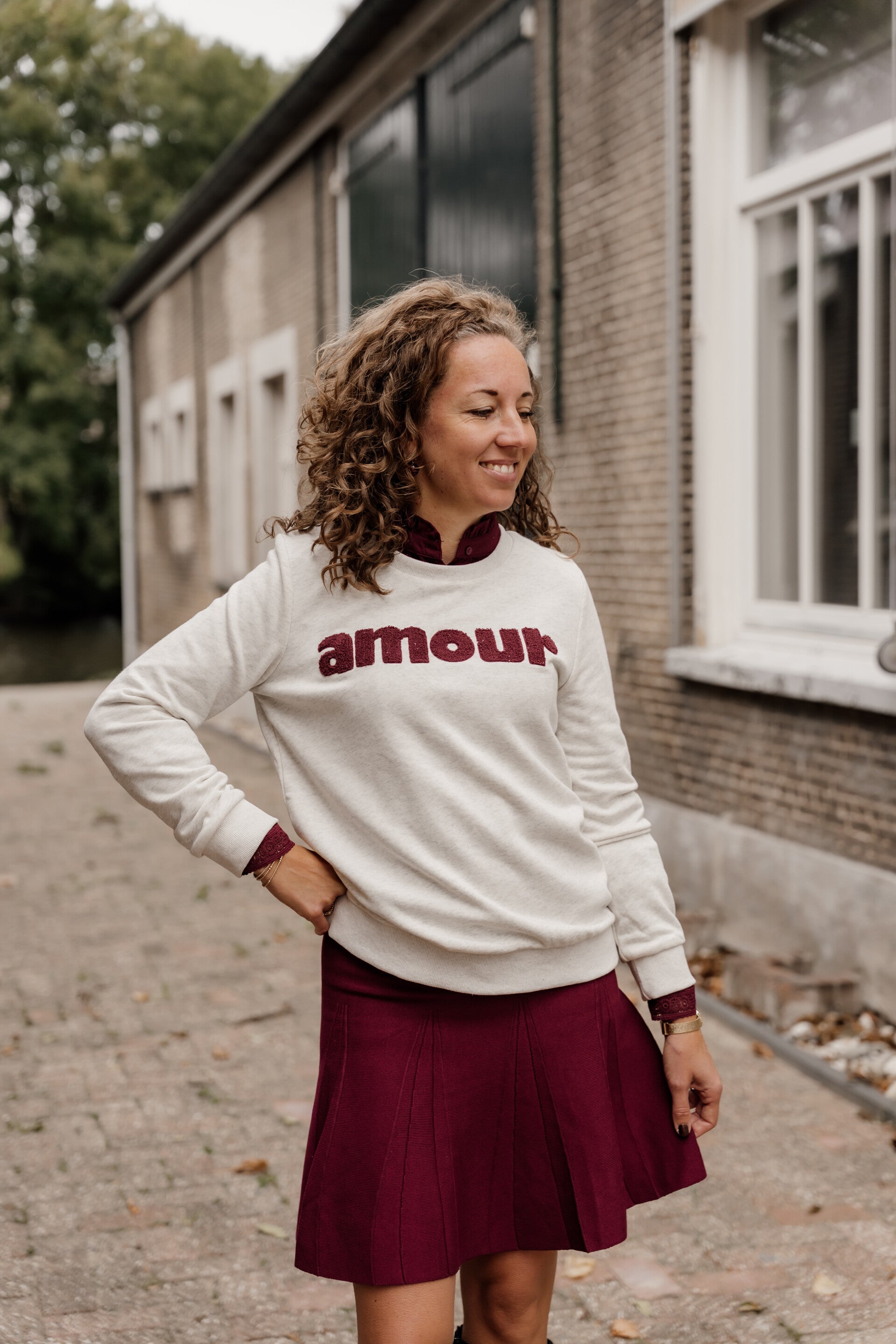 Deze blouse valt goed op maat, het is geen strak model. De blouse is verkrijgbaar in maat S, M en L. Mariëlle draagt maat S.