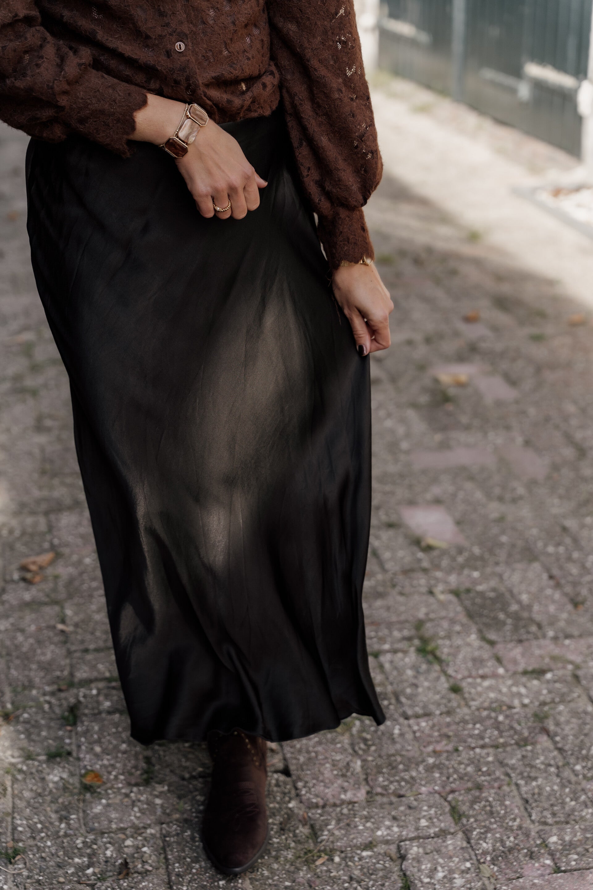 Must-have rok in de mooie choco kleur! Lengte van de rok is 90 cmOne size - te dragen t/m maat L. Mariëlle is 1,68 m en draagt meestal S/M.