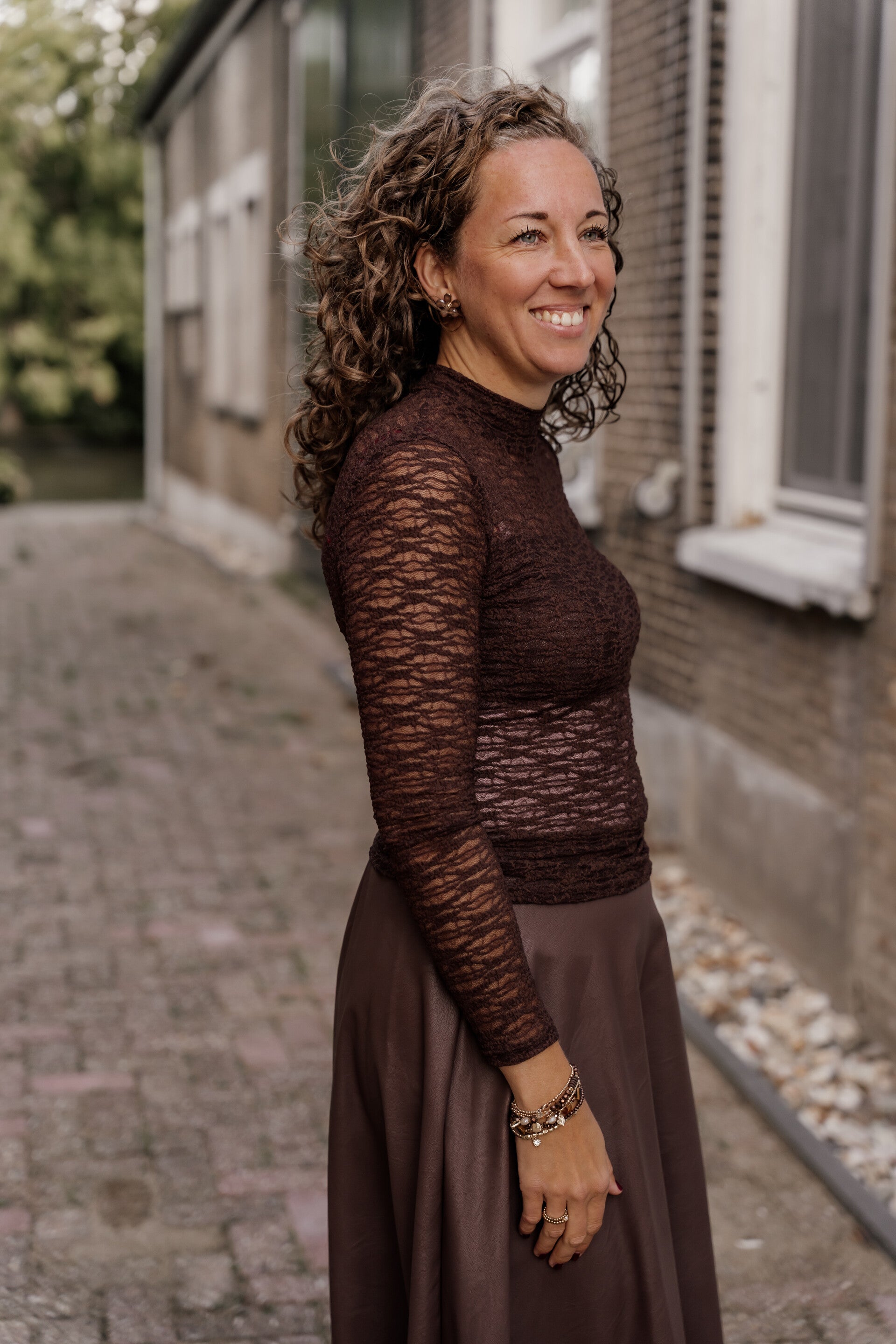Deze kanten top is de perfecte basis voor iedere outfit. De fijne, zachte kwaliteit en het opstaande boordje bij de hals geven de top een elegante uitstraling. De buste is gevoerd voor extra draagcomfort, terwijl de aangesloten pasvorm zorgt voor een vrouwelijk silhouet. Perfect te dragen onder een vest of trui.