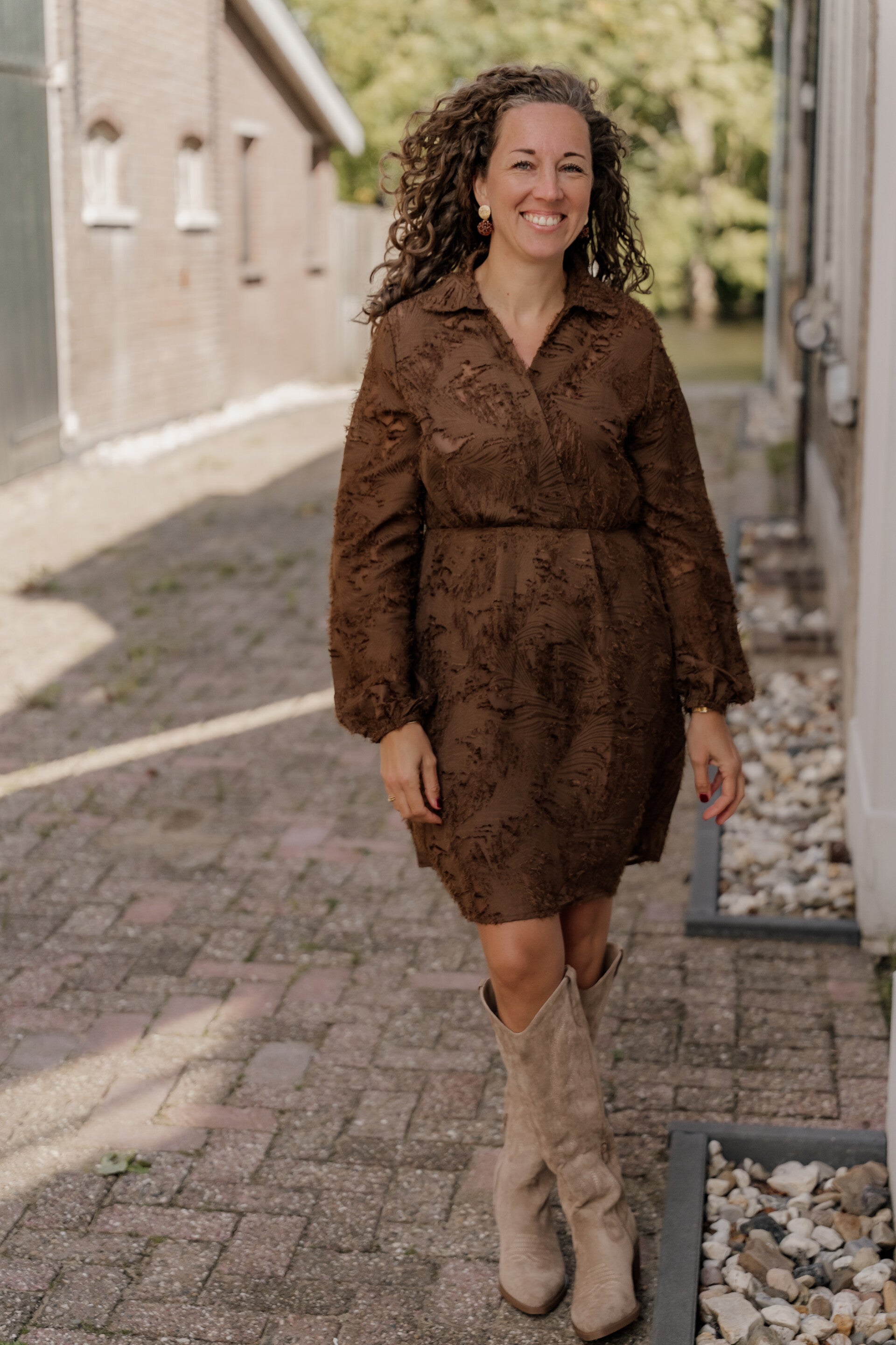 Lengte van de jurk is 94 cm.Materiaal: 50% viscose, 50% polyester