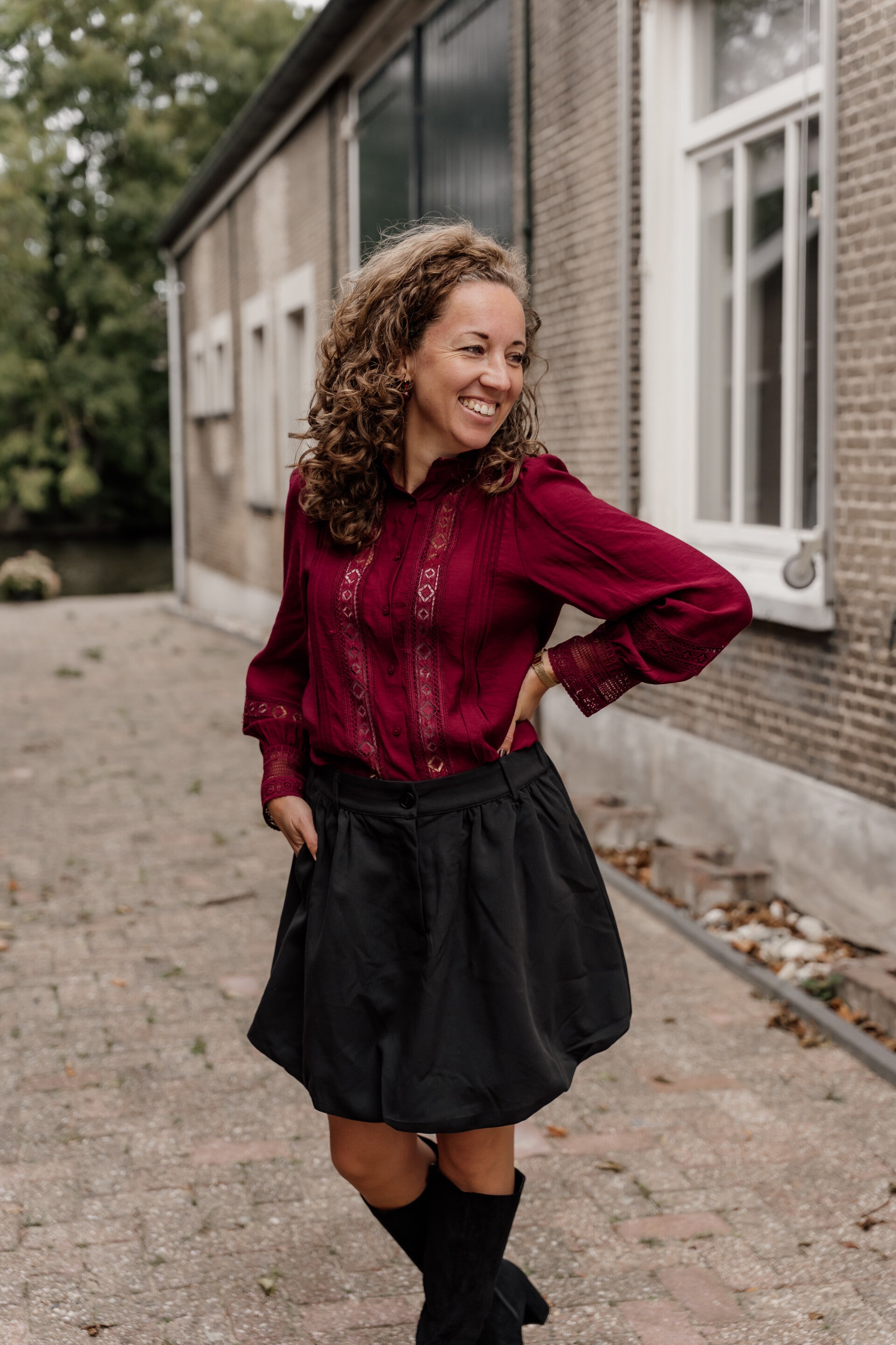 Lengte van het rokje is 47 cm. Valt goed op maat - Mariëlle is 1,68 m en draagt maat S/M.
