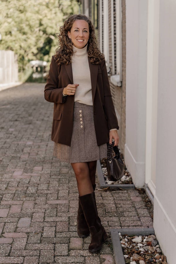 Deze zachte beige trui is een stijlvolle essential voor elk seizoen. Het elegante design met ronde hals en licht ballonvormige mouwen geeft een vrouwelijke en tijdloze uitstraling. Dankzij de fijne knit en subtiele structuur voelt de trui comfortabel aan op de huid en biedt hij een flatterende pasvorm.