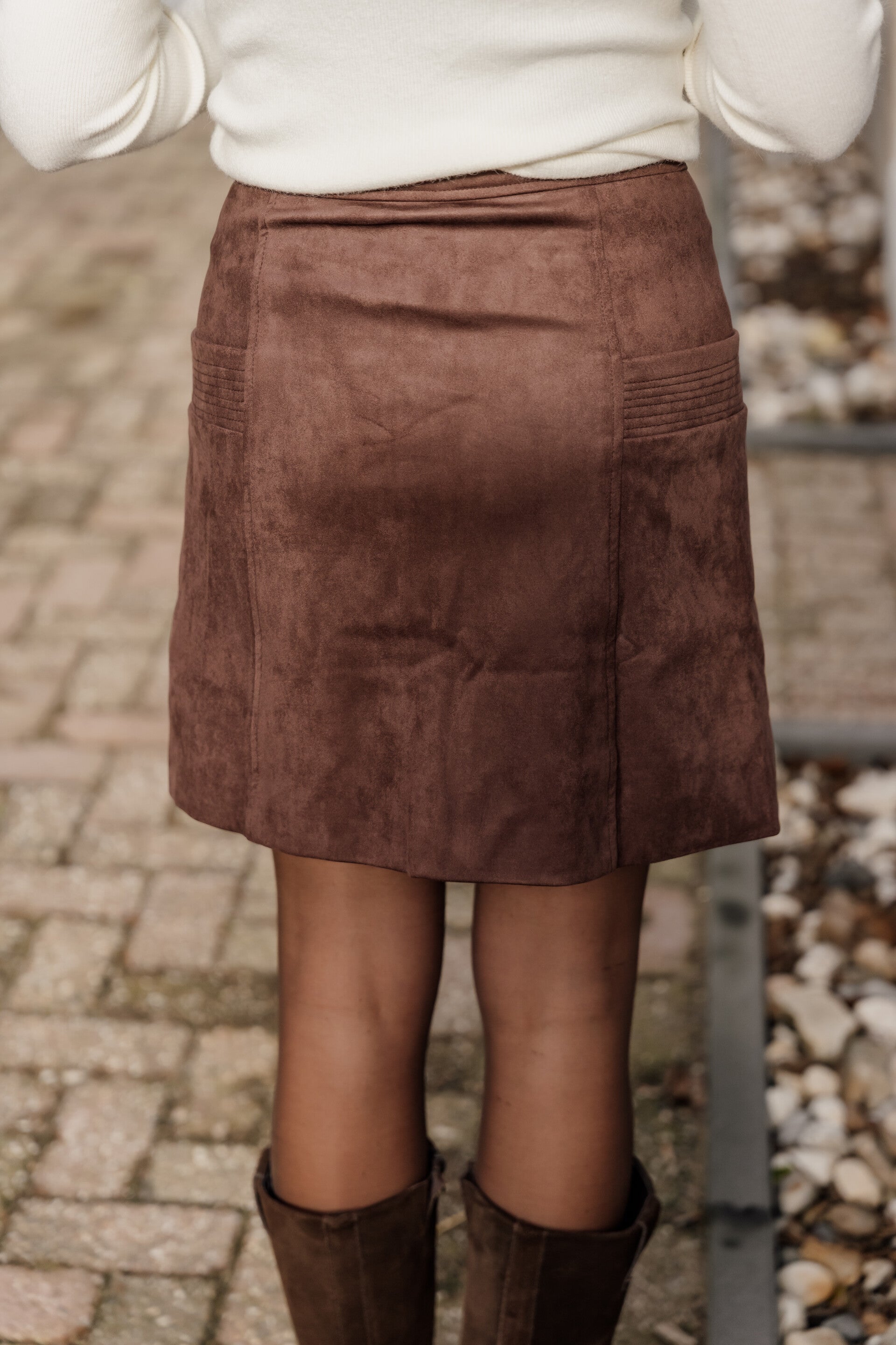 Dit musthave suèdelook rokje in een warme bruine tint is het perfecte item voor dit seizoen! De zachte suedine stof voelt luxe aan, terwijl de stijlvolle knoopjes aan de voorkant zorgen voor een trendy, vrouwelijke uitstraling. Het rokje is volledig gevoerd en gemaakt van een stevige kwaliteit met stretch, zodat het mooi in model blijft én comfortabel zit.