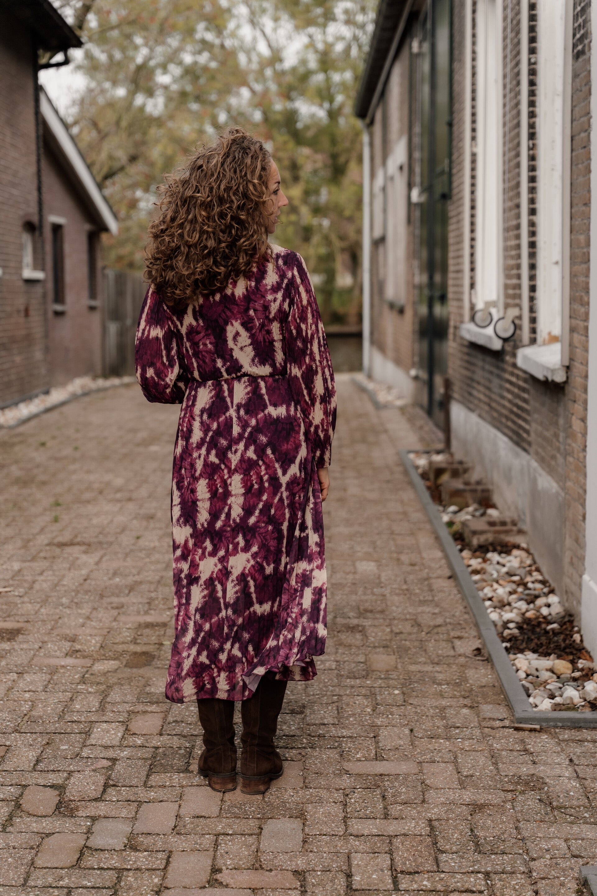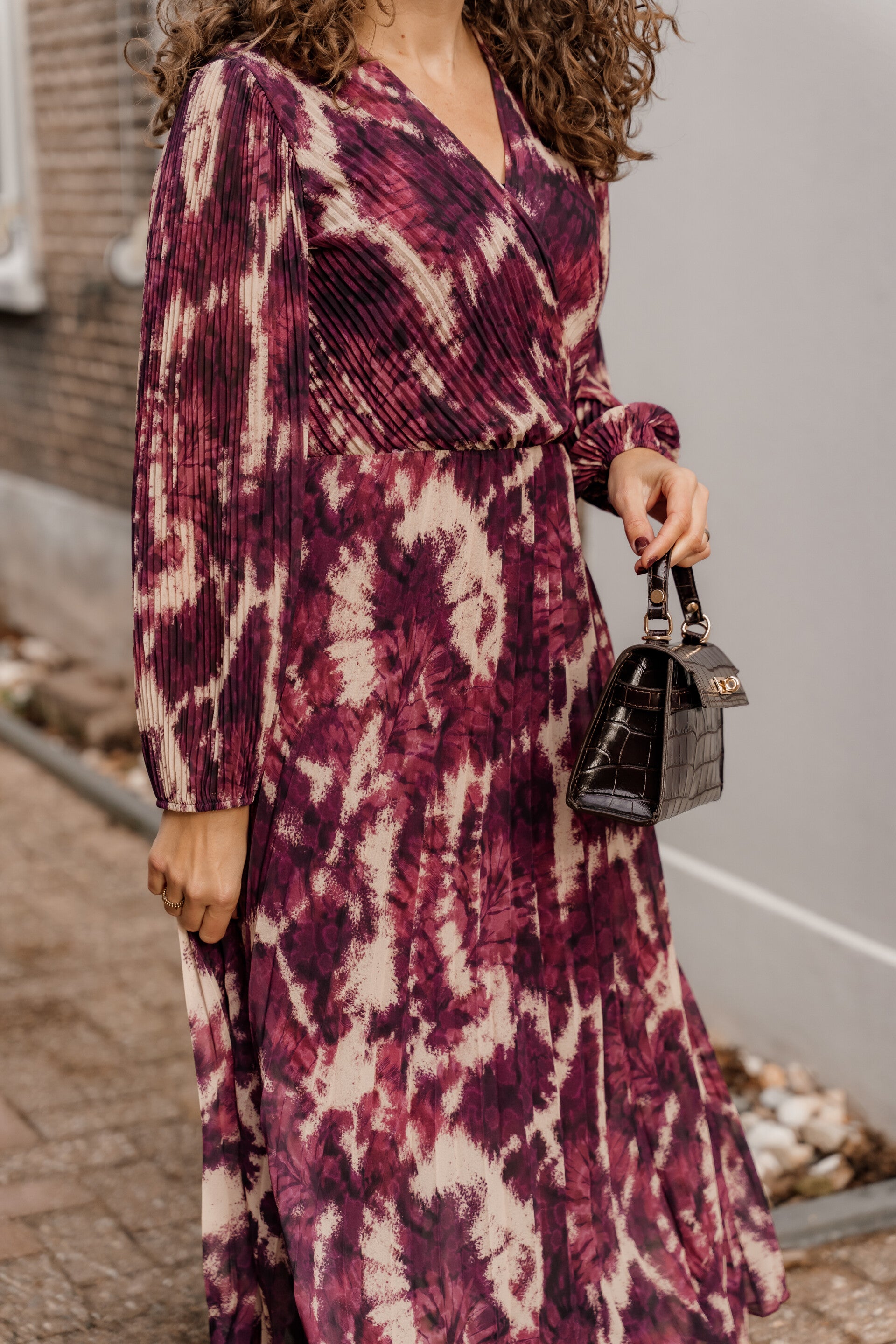 De jurk heeft lange mouwen met subtiele plooidetails en is ideaal voor zowel een casual daglook met laarzen als een feestelijke avondstijl met hakken. De jurk bevat een onderjurk.
