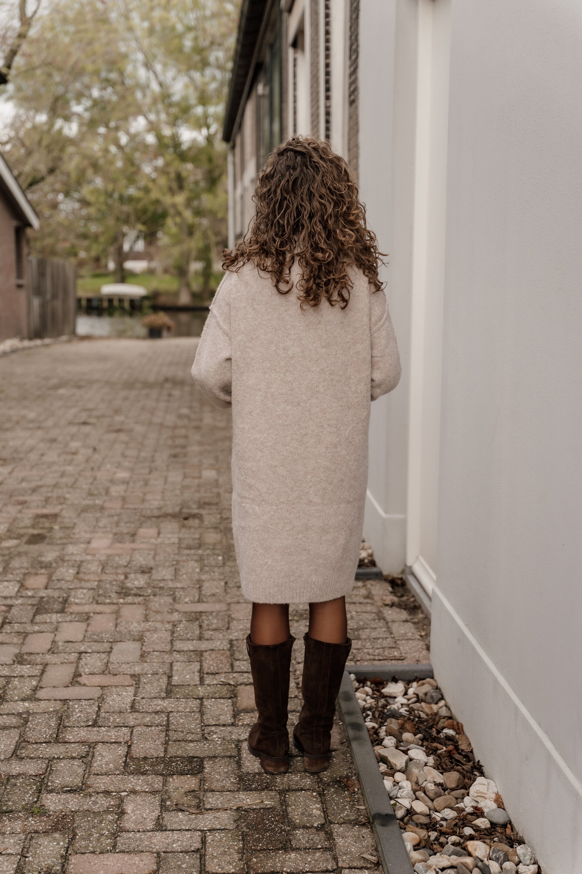 La Flor zacht gebreide jurk - zand