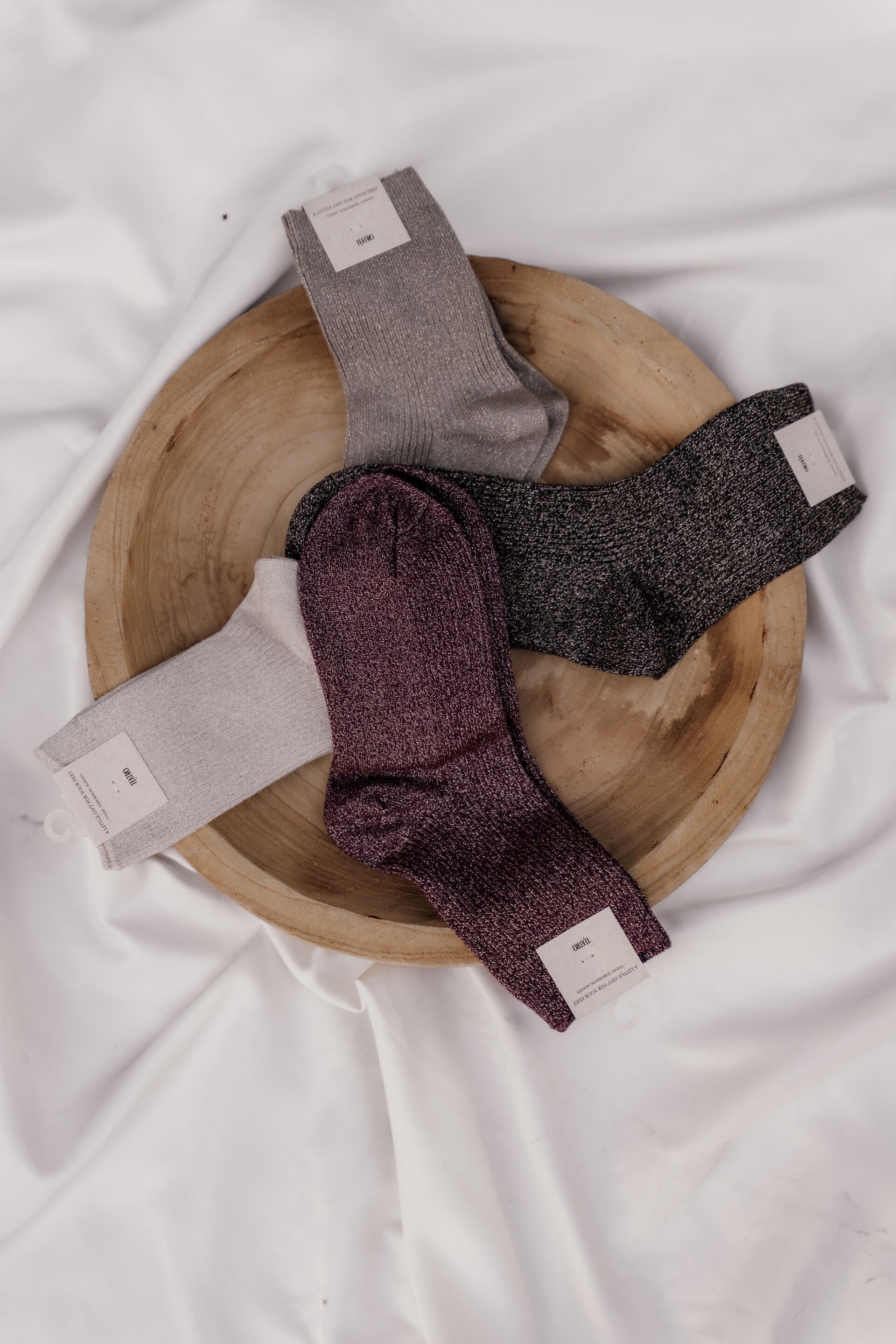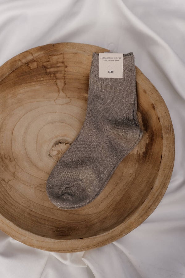 De sokken zijn afgewerkt met een subtiel gouden lurex glitterdraadje en verkrijgbaar in vier kleuren: burgundy, taupe, donkerbruin en beige. One size, geschikt van maat 36-41.