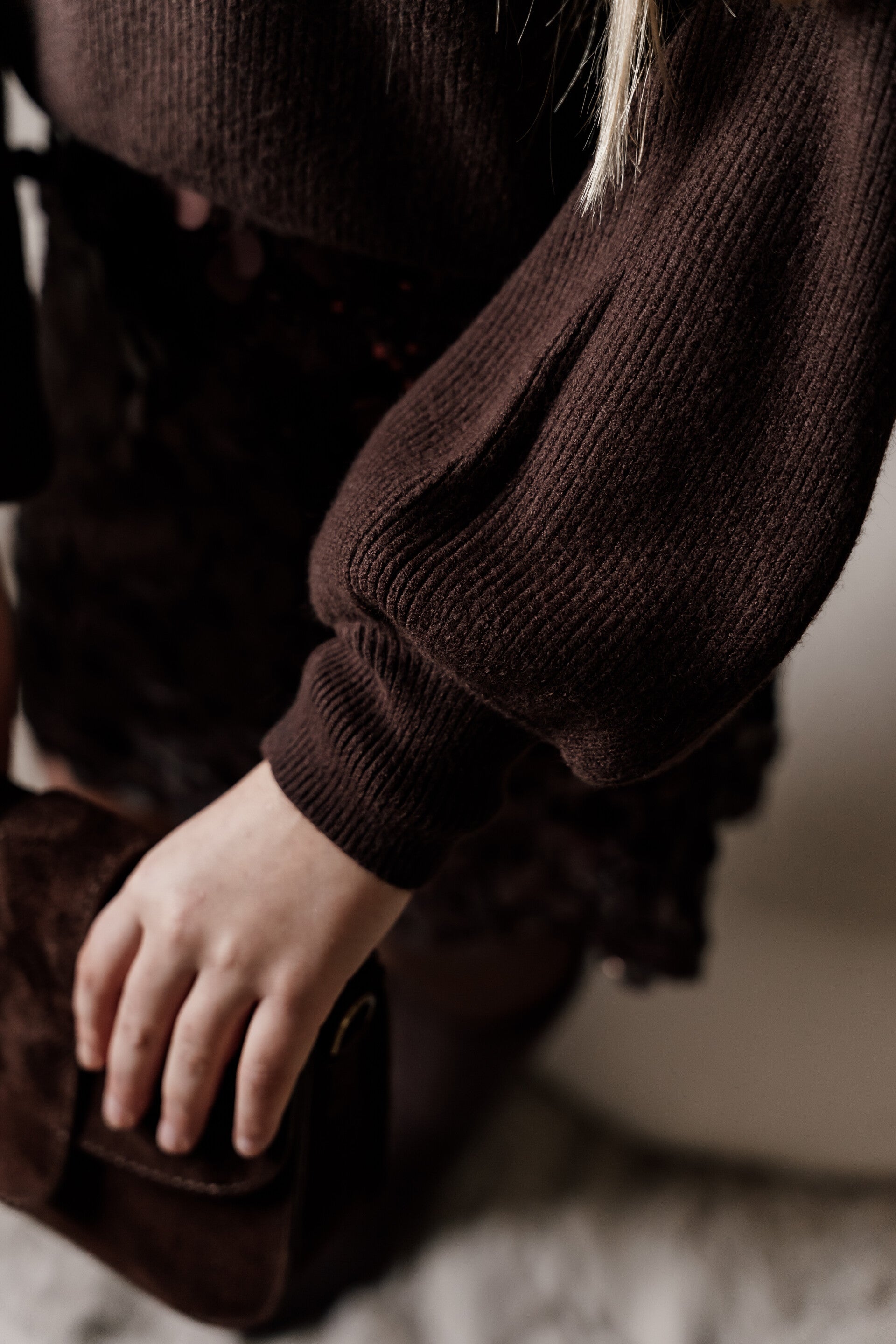 La Flor trui met col donkerbruin