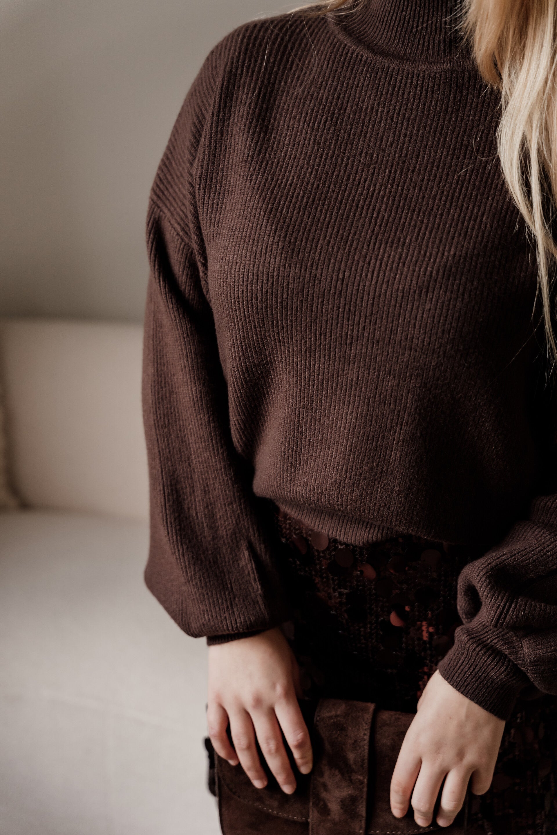 Deze zachte beige trui is een stijlvolle essential voor elk seizoen. Het elegante design met ronde hals en licht ballonvormige mouwen geeft een vrouwelijke en tijdloze uitstraling. Dankzij de fijne knit en subtiele structuur voelt de trui comfortabel aan op de huid en biedt hij een flatterende pasvorm.