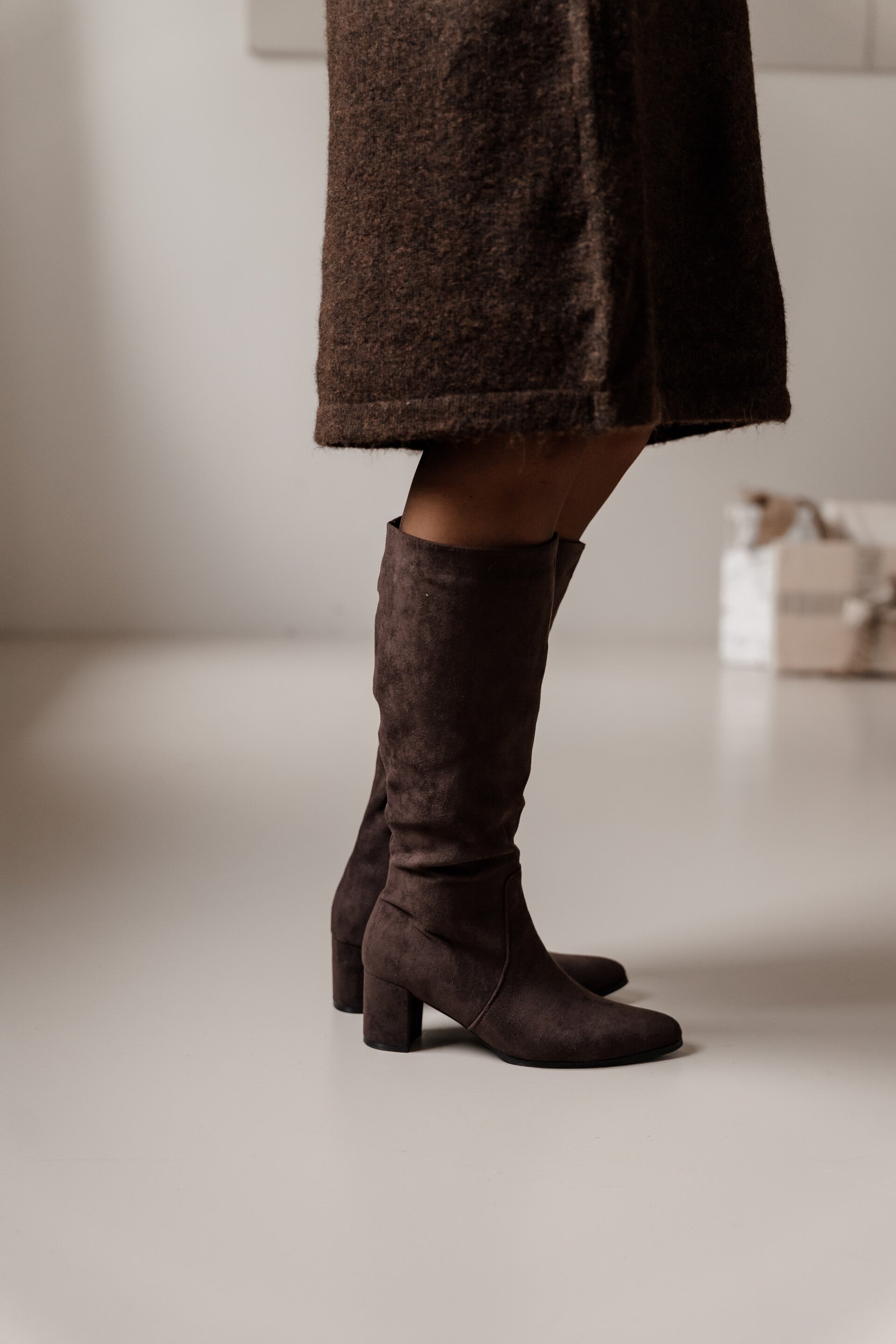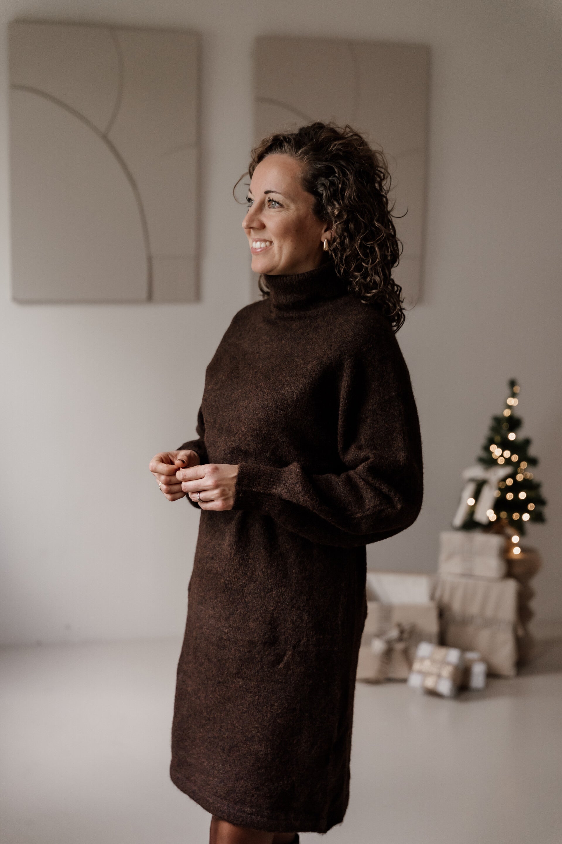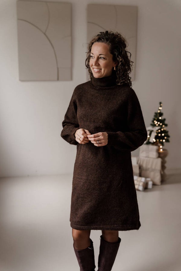 Azzurro zacht gebreide jurk met col - donkerbruin