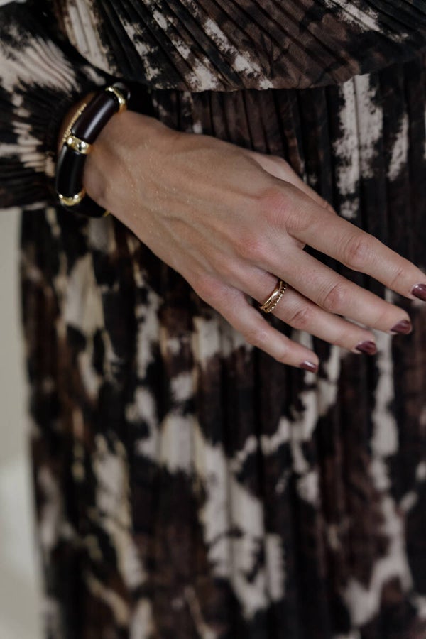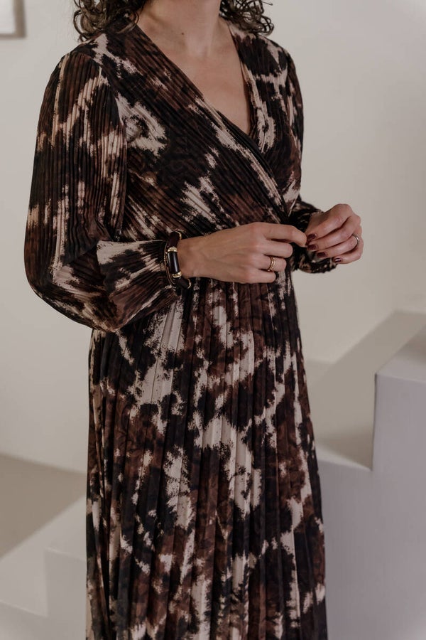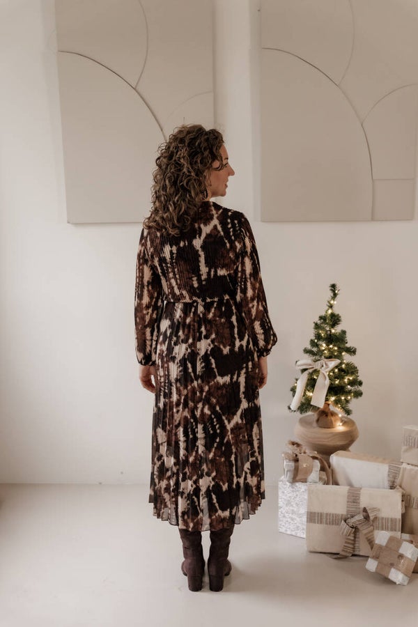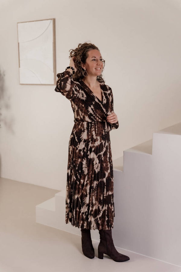 La Flor maxi plissé jurk print bruin