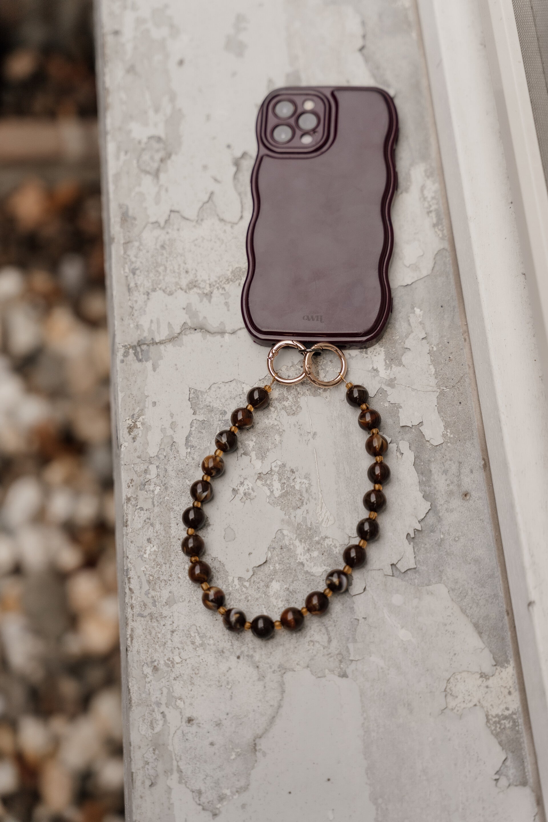 La Flor telefoonkoord kralen rond bruin