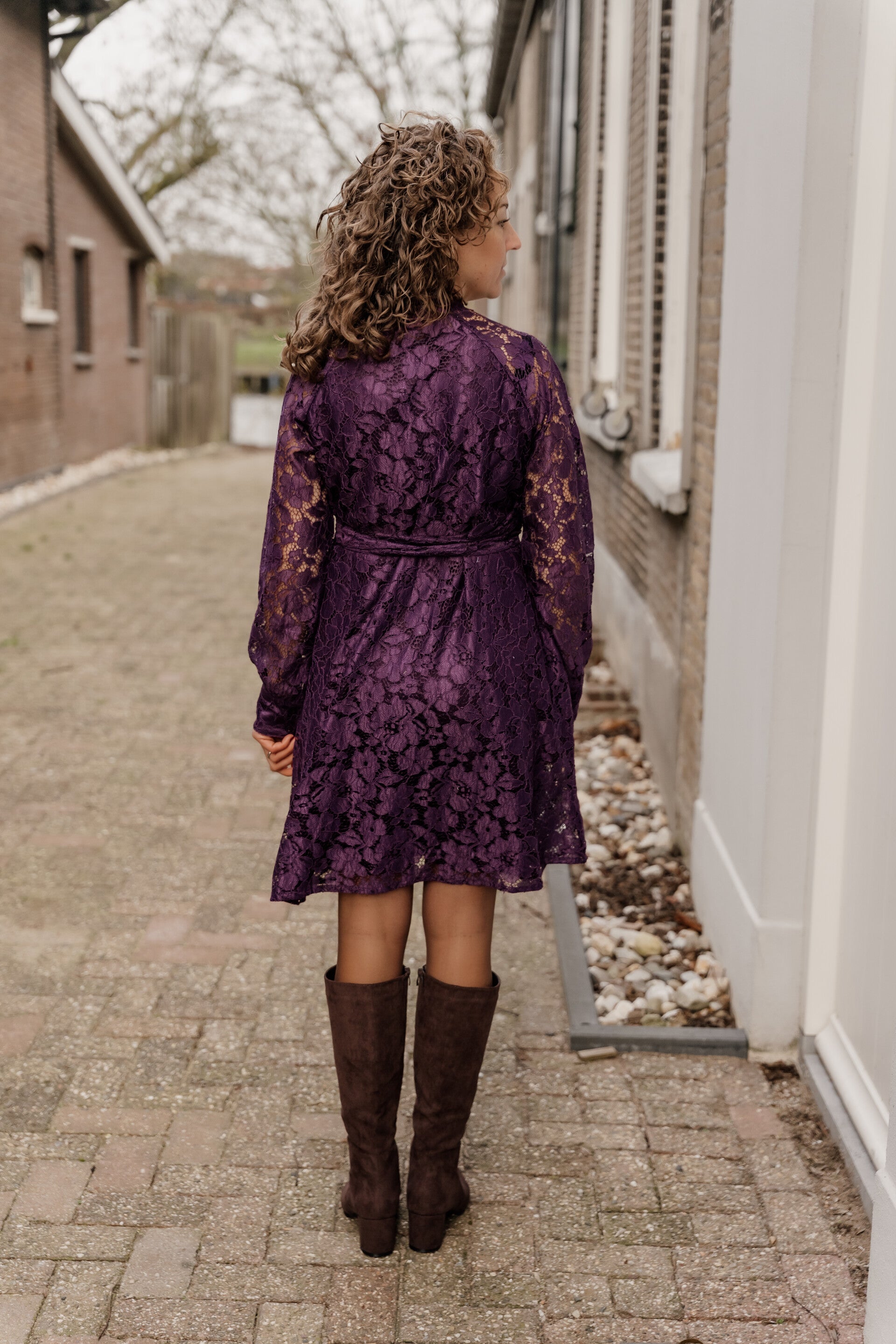 La Flor lace jurk paars