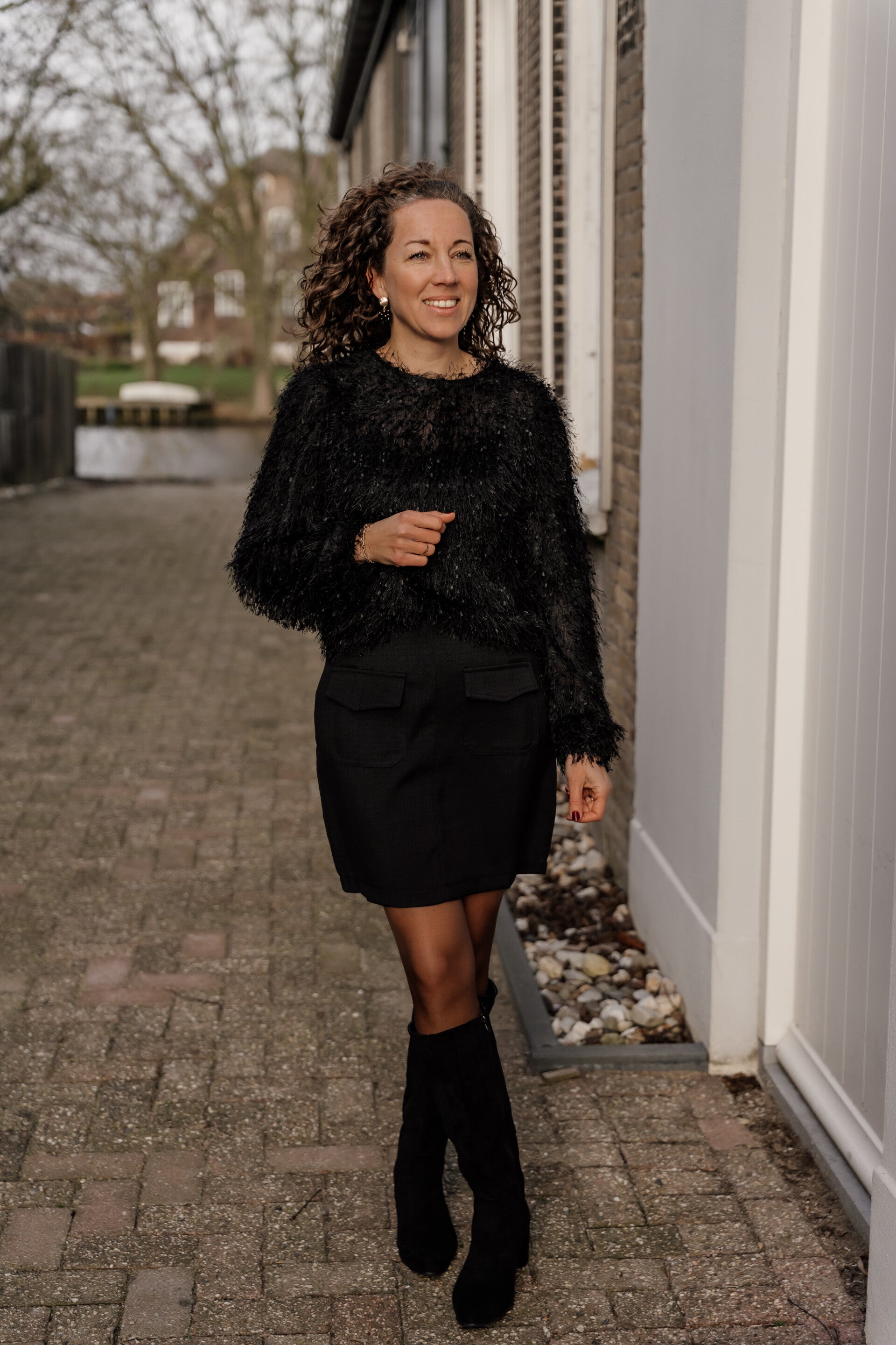 Lengte van het rokje is 47 cm. Mariëlle is 1,68 m en draagt maat S/M.