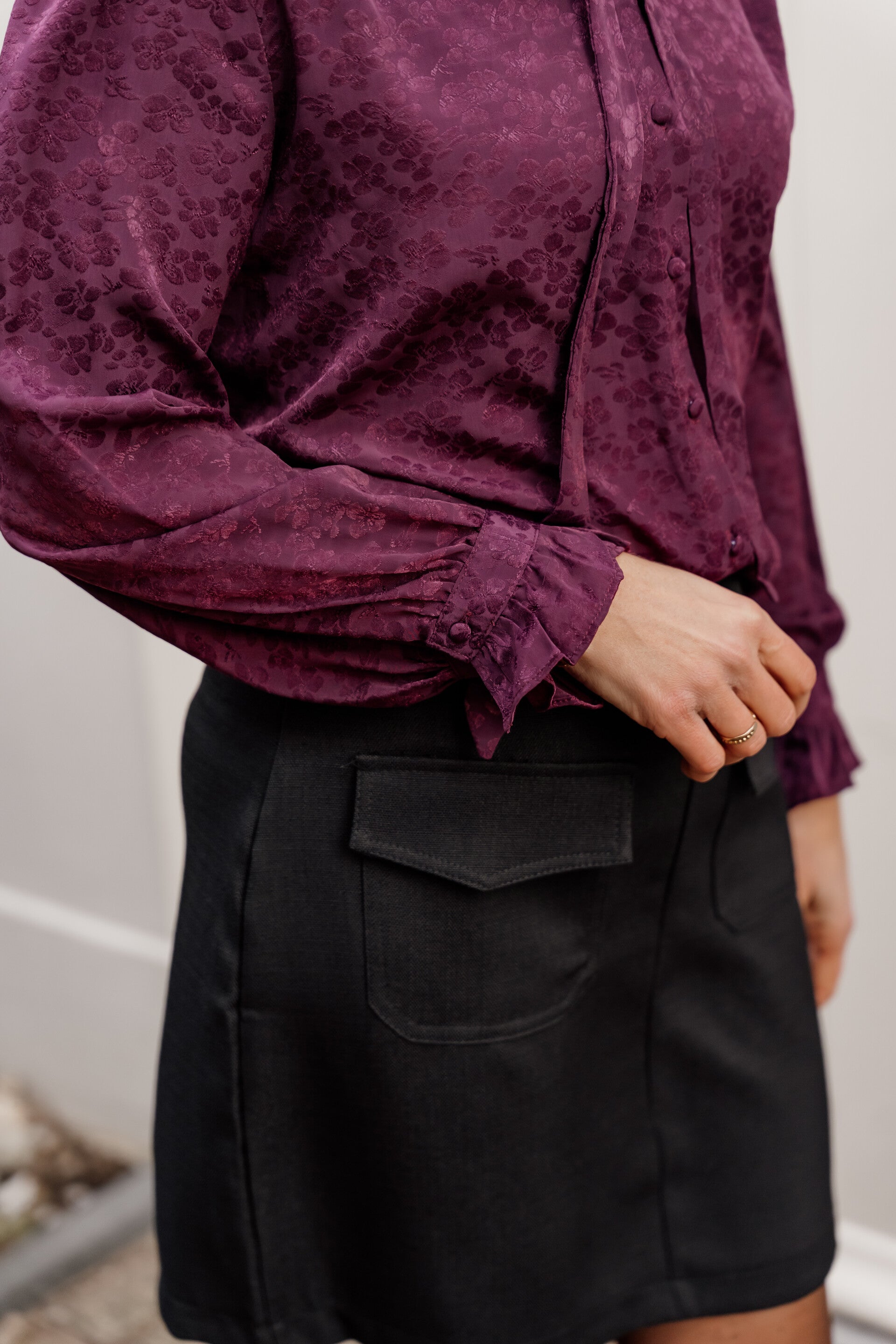 Het rokje valt wat klein uit, maar dankzij de stretch in de stof draagt het alsnog prettig en sluit het mooi aan op het lichaam. Perfect te combineren met een zachte knit of blouse voor een elegante look, maar ook casual te stylen met een trui en laarzen.