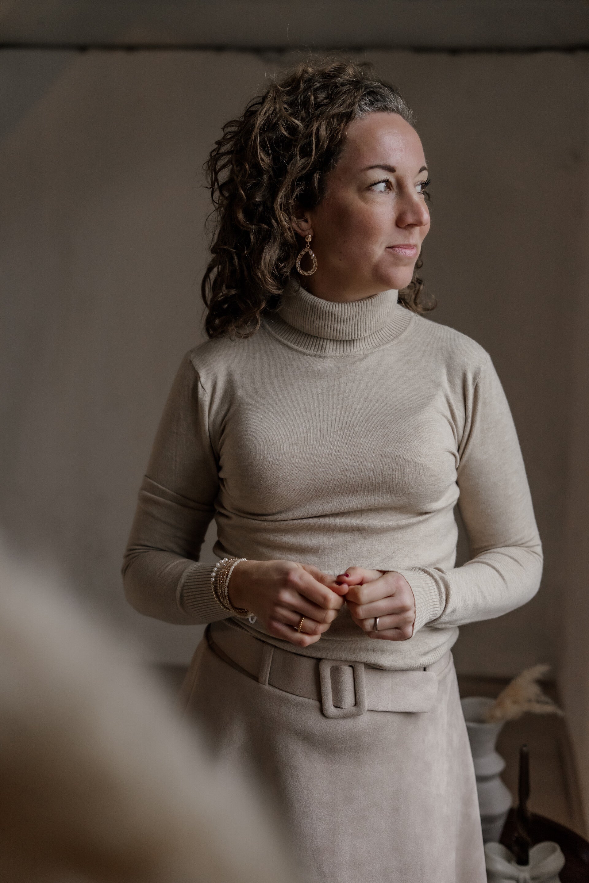Deze beige kleurige basic top met col is een comfortabel en veelzijdig accessoire dat warmte biedt tijdens koudere dagen. De neutrale kleur maakt het makkelijk te combineren met verschillende outfits. Een must-have voor een cozy en stijlvolle look.