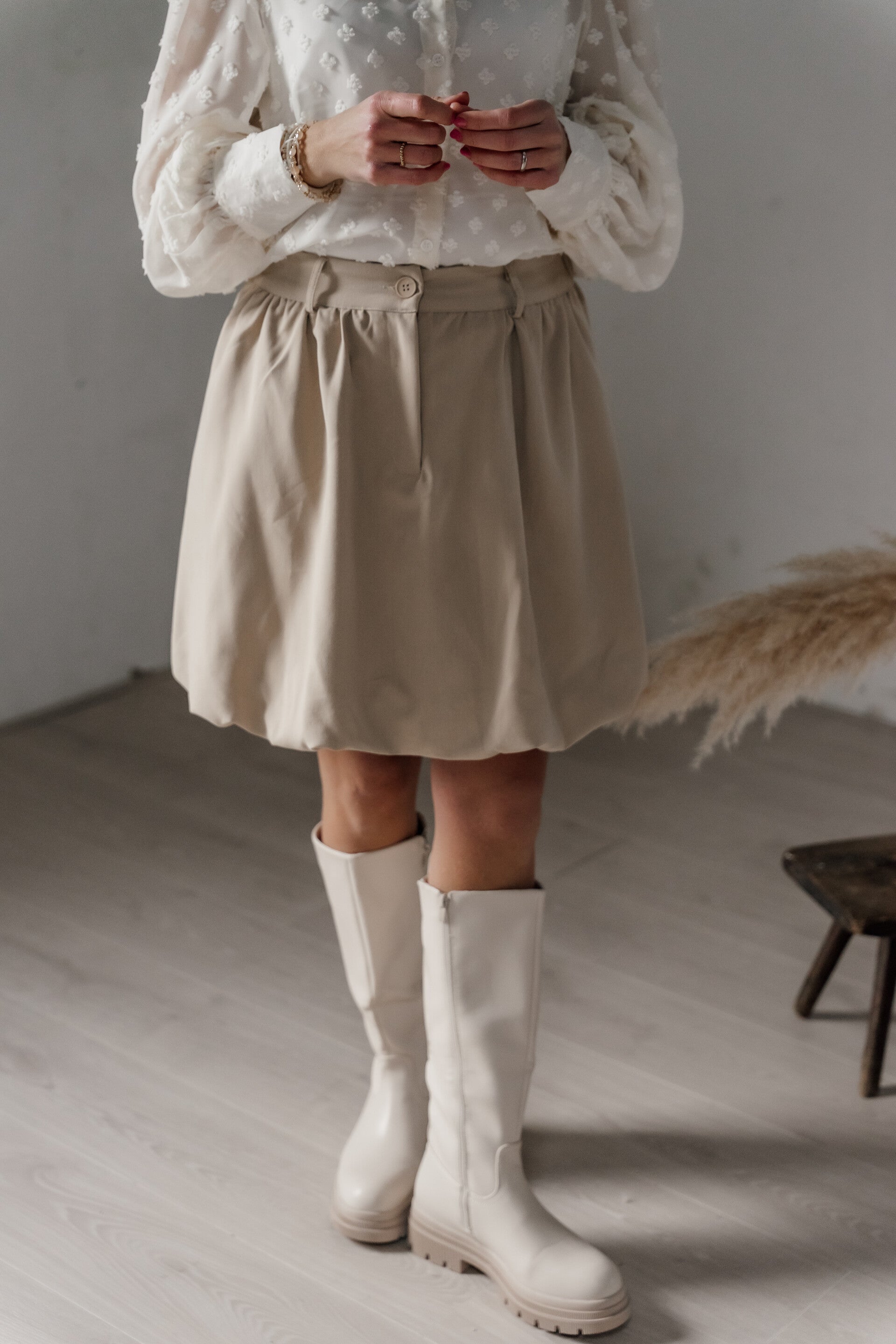 Deze trendy beige laarzen zijn de perfecte mix van stijl en comfort. Het strakke, minimalistische design wordt gecombineerd met een stevige chunky zool, waardoor ze niet alleen fashionable zijn maar ook heerlijk lopen. De laarzen hebben een middelhoge schacht en een subtiele ritssluiting aan de binnenzijde voor gemakkelijk aan- en uittrekken. De neutrale beige tint maakt ze eindeloos te combineren met zowel jurken, rokken als pantalons.